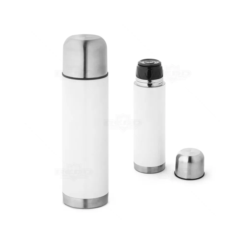 Garrafa térmica personalizada produzida em aço inox com parede dupla que conserva líquidos quente ou frio por mais tempo e tampa com sistema de vácuo. Capacidade até 500ml. Mantém as bebidas quentes por 12h e frias por 24h. Ideal para eventos corporativos e brindes promocionais.