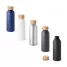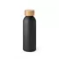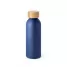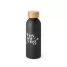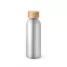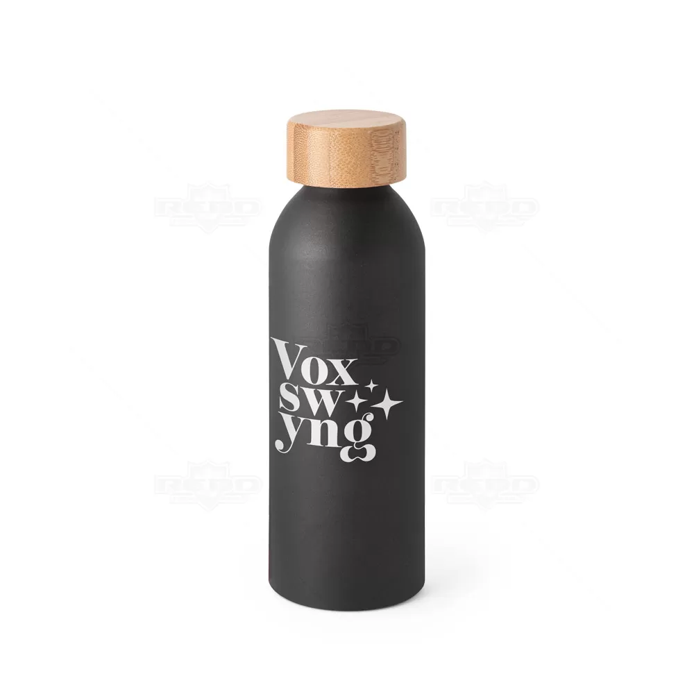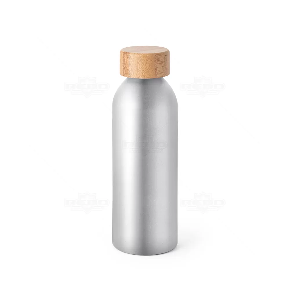 Squeeze personalizado produzido em alumínio com acabamento fosco e tampa em bambu. Possui capacidade de 550 ml. Ideal para brindes promocionais e eventos corporativos. Imagem ilustrativa.