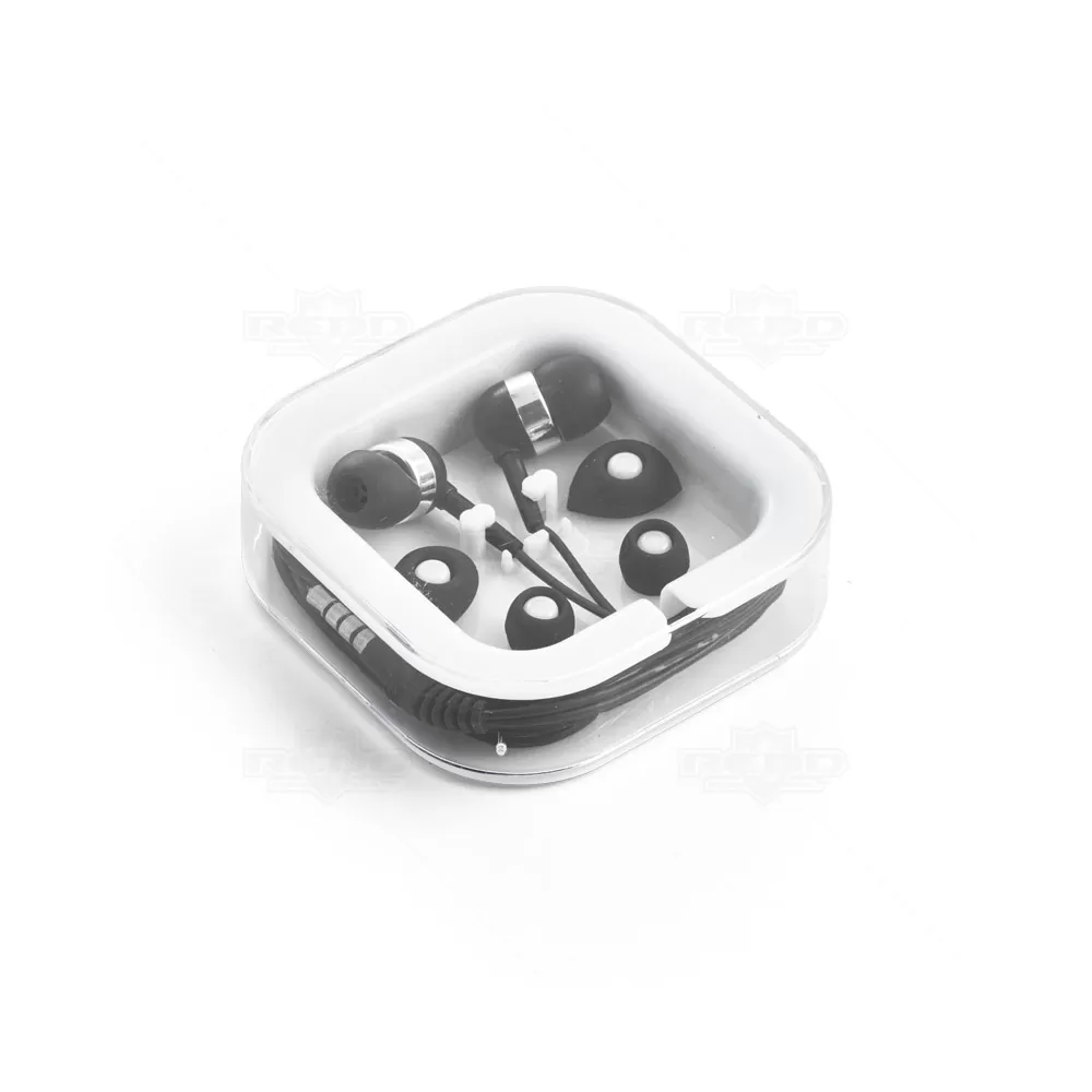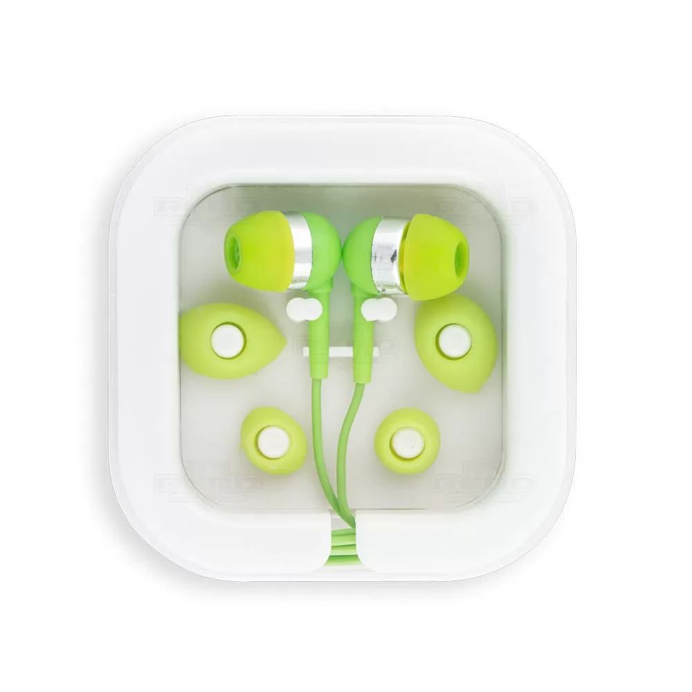 Fone de ouvido com microfone incorporado e cabo de 1,20 m com ligação estéreo 3,5 mm. Inclui 2 pares extra de adaptadores de fone em silicone (dois tamanhos diferentes) e embalagem em PS. Ideal para brindes promocionais e eventos corporativos.