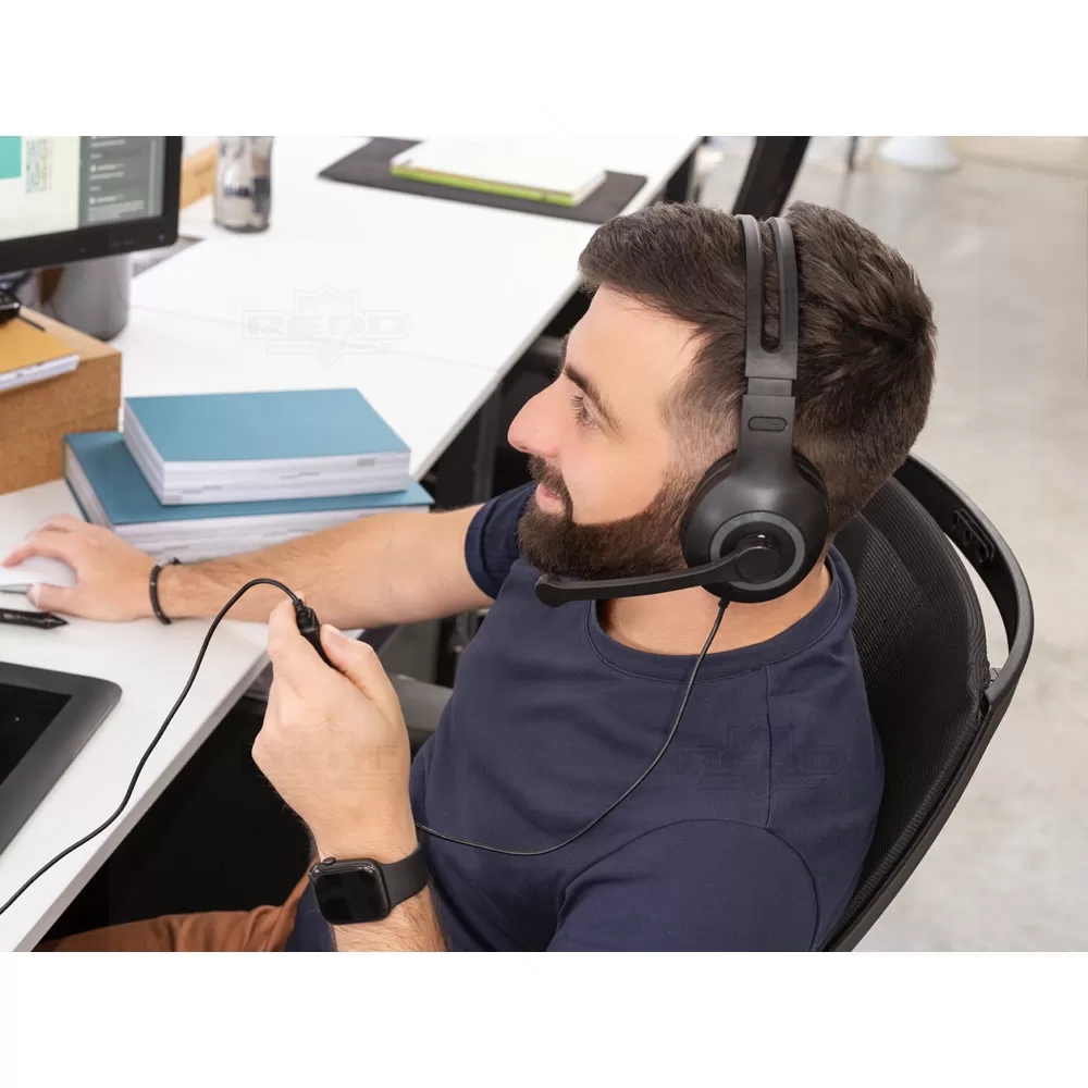 Fone de ouvido personalizado com microfone ajustável produzido em ABS e PP. Um headset é um dispositivo de áudio que combina um fone de ouvido com um microfone em um único conjunto, permitindo que o usuário ouça o som e fale ao mesmo tempo, sem usar as mãos.Headsets são comumente usados para fins de comunicação, como em ligações telefônicas, videoconferências, jogos online, transmissões ao vivo, entre outros. Eles são especialmente populares em ambientes de escritório e jogos. Os headsets podem ser conectados a dispositivos eletrônicos, como computadores, smartphones, tablets, consoles de jogos e sistemas de áudio. Incluí um controle de som com 4 botões: aumentar/diminuir volume, desligar microfone e sem som. Frequência de resposta de 20Hz-20KHz, impedância 32?, cabo de 1,85 cm e conexão por USB A. *Imagem ilustrativa, a base de suporte e carregamento não acompanha o produto.