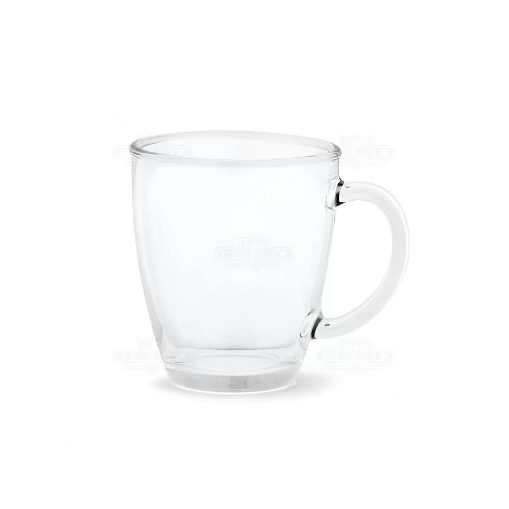Caneca de vidro personalizada com capacidade para 390 ml. Um produto charmoso, elegante e perfeito para o seu café da tarde. Ideal para brindes promocionais e eventos corporativos.