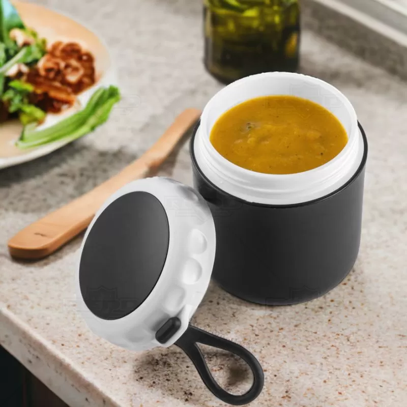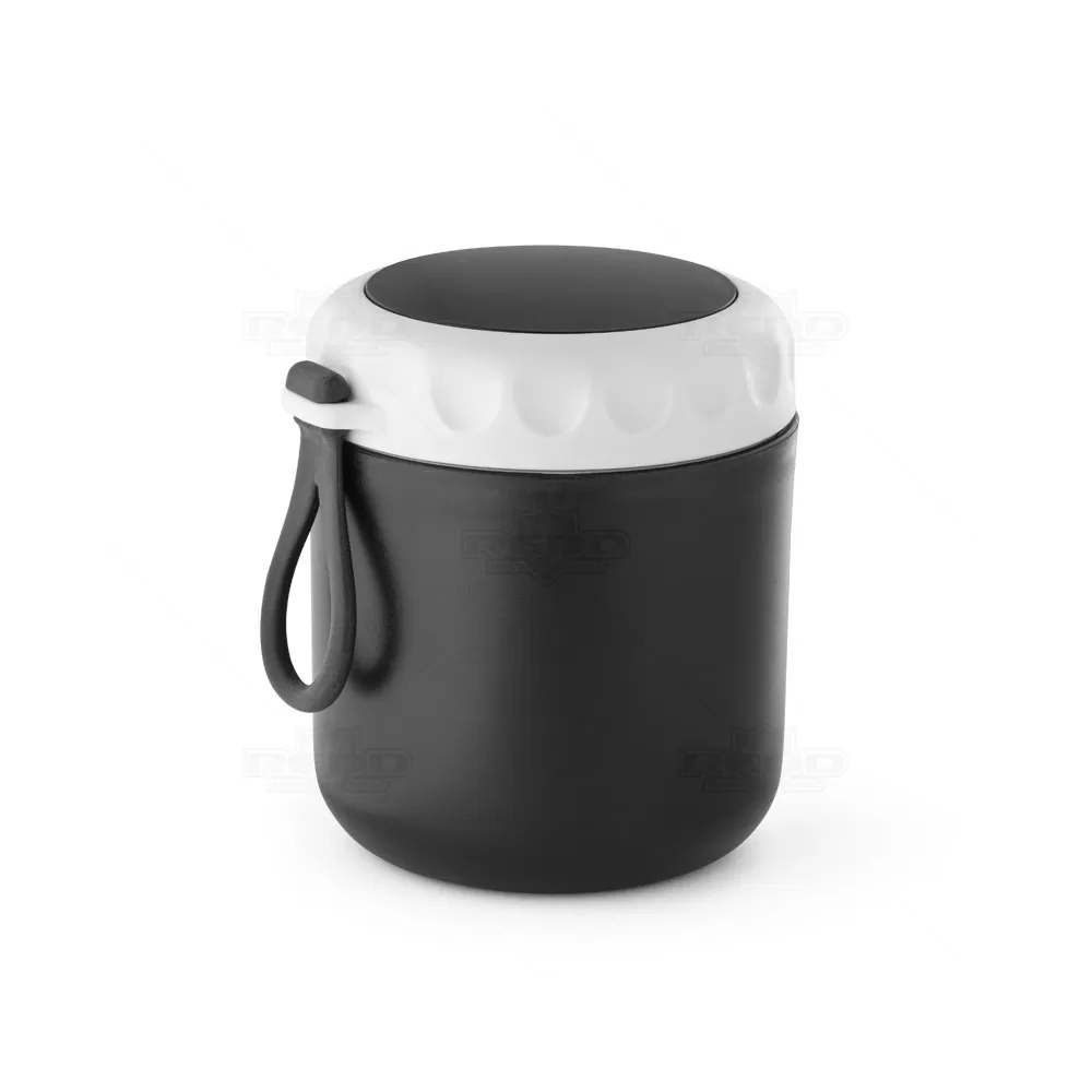 Copo térmico personalizado com capacidade para 380ml, possui parede dupla, recipiente térmico em PP, corpo plástico e alça de mão lateral em silicone que facilita o transporte. Perfeito para refeições pequenas refeições, lanche, papinha do bebê e tudo o mais que precisar. Ideal para brindes promocionais e eventos corporativos. *Imagem ilustrativa, itens não acompanham o produto.