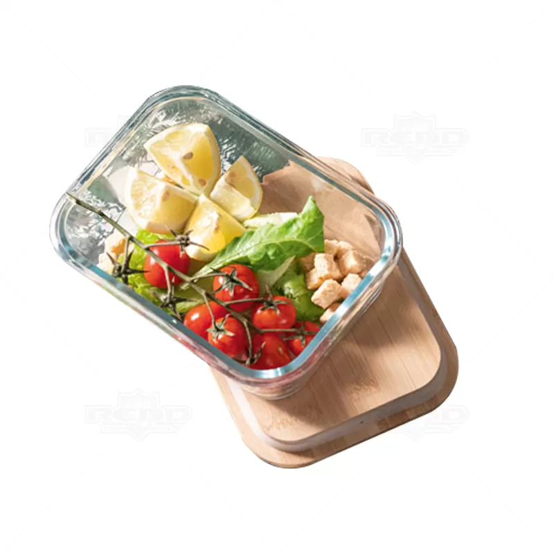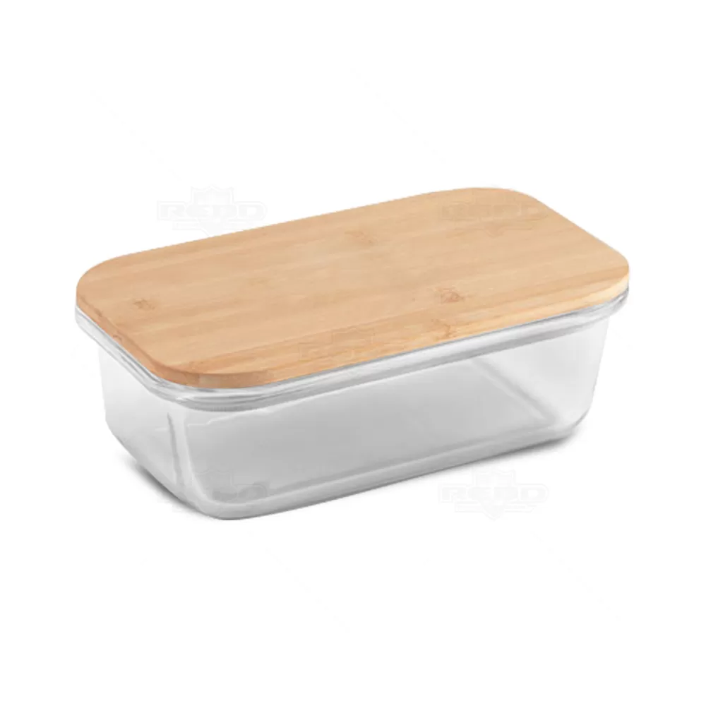 Marmita personalizada, produzida em vidro borossilicato e tampa em bambu com vedante em silicone. Apto para o micro-ondas e máquina lava louças, desde que retire a tampa. Capacidade até 1L. *Imagem ilustrativa, itens não acompanham o produto. Ideal para brindes personalizados e eventos corporativos.