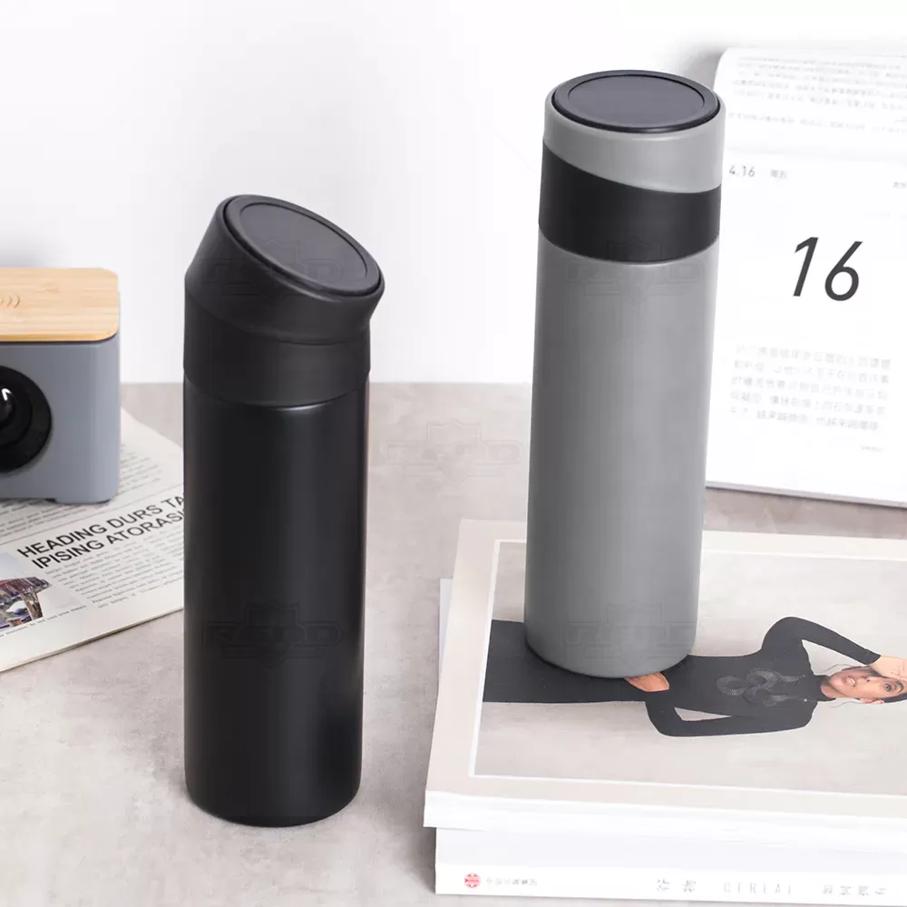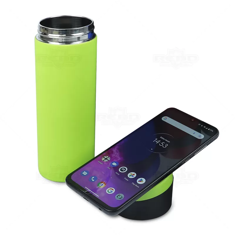 Garrafa térmica em aço inox com parede dupla e isolamento a vácuo, com capacidade de até 400 ml. Tampa rosqueável com anel de silicone para vedação, com apoio para celular na tampa para aproveitar e ver os seus vídeos sem correr o risco de derrubar seu aparelho. Conserva a temperatura quente por 5 horas e a fria por 8 horas. Ótimo para academias, práticas esportivas, brindes promocionais e eventos corporativos. *Imagem ilustrativa, itens não acompanham o produto.