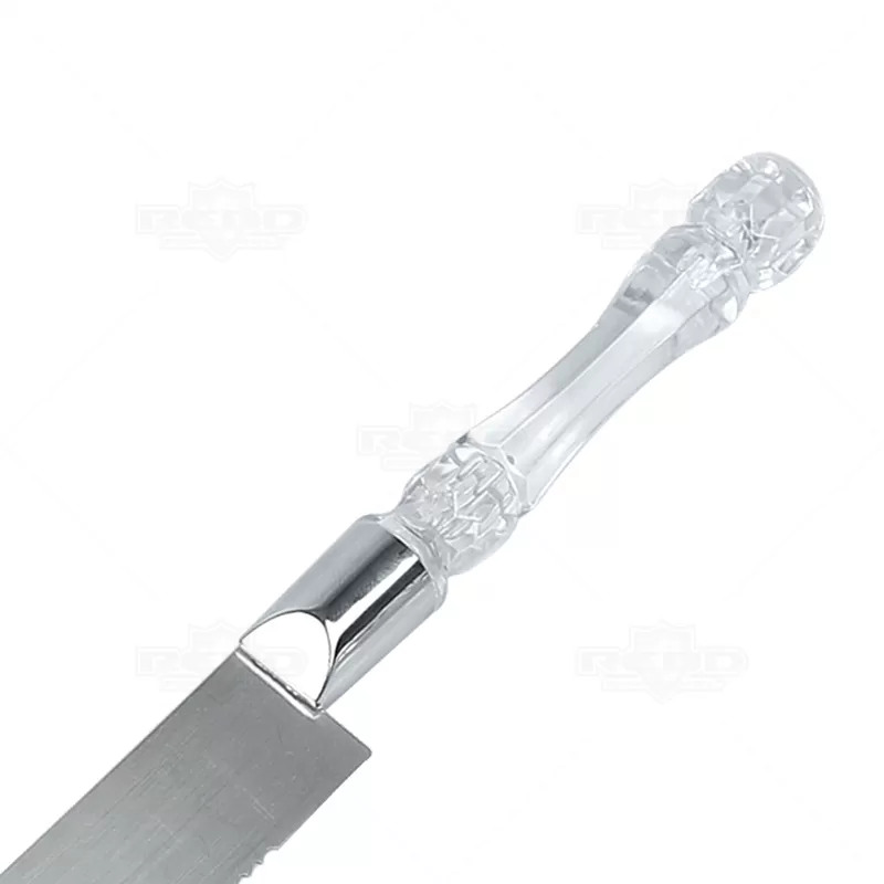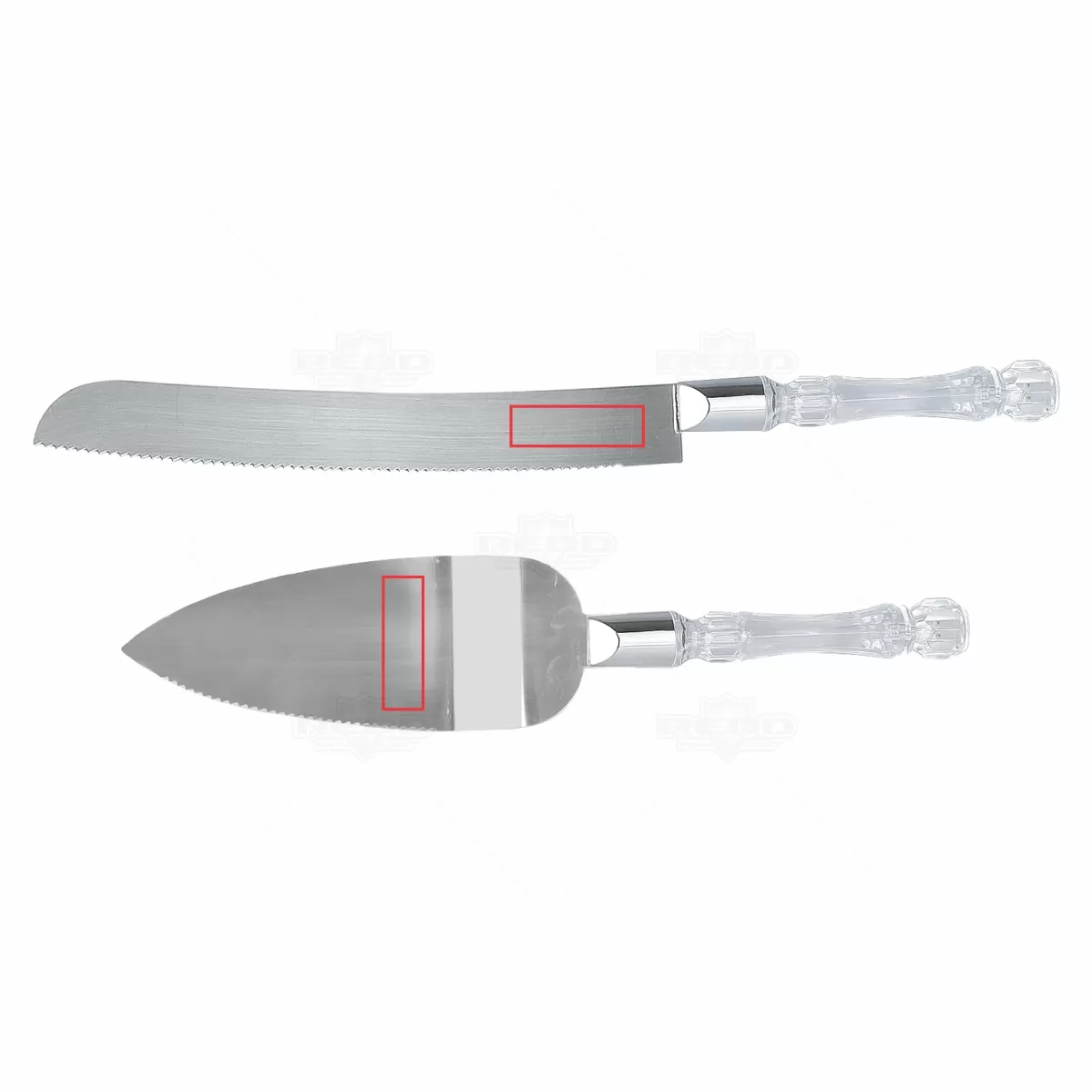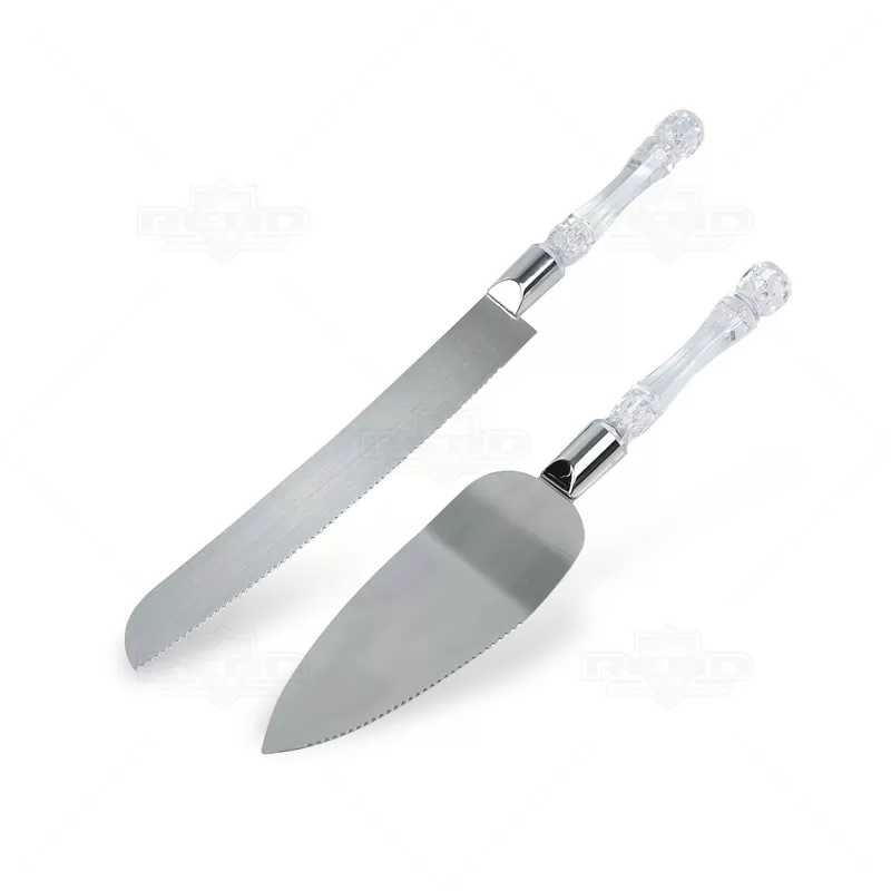Kit utensílios personalizado de cozinha com 2 peças, composto por espátula e faca em inox com cabos plásticos. Surpreenda seus convidados ao servir o lanche com esses utensílios de extrema elegância.
