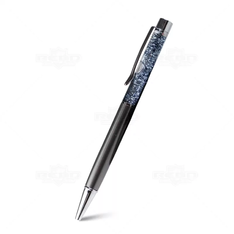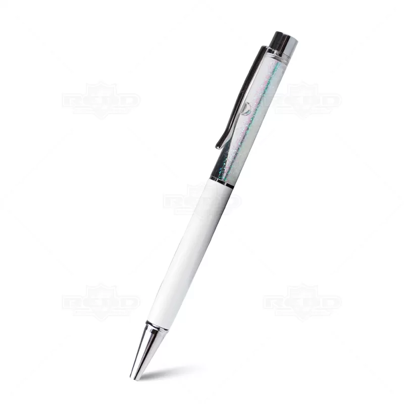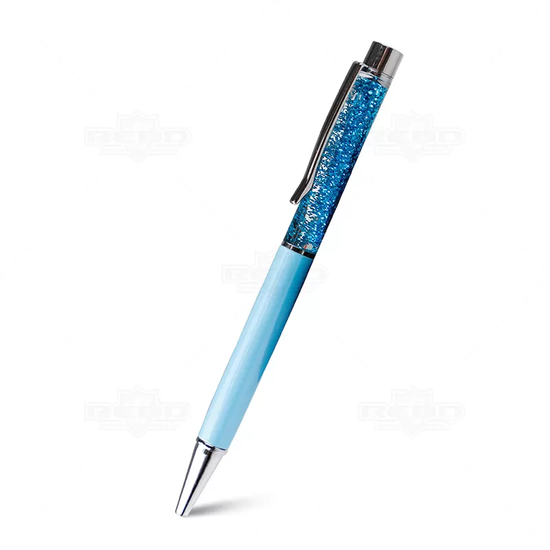 Caneta Plástica Personalizada Com Detalhe Brilhante, seu design inovador e elegante possui um acabamento diferenciado onde o charme da caneta é o brilho "flutuante" em seu corpo, além de possuir uma escrita macia com esferográfica azul. É uma ótima opção para eventos corporativos, campanhas publicitárias e brindes promocionais. O acionamento da ponteira é feito através do sistema giratório na parte inferior.