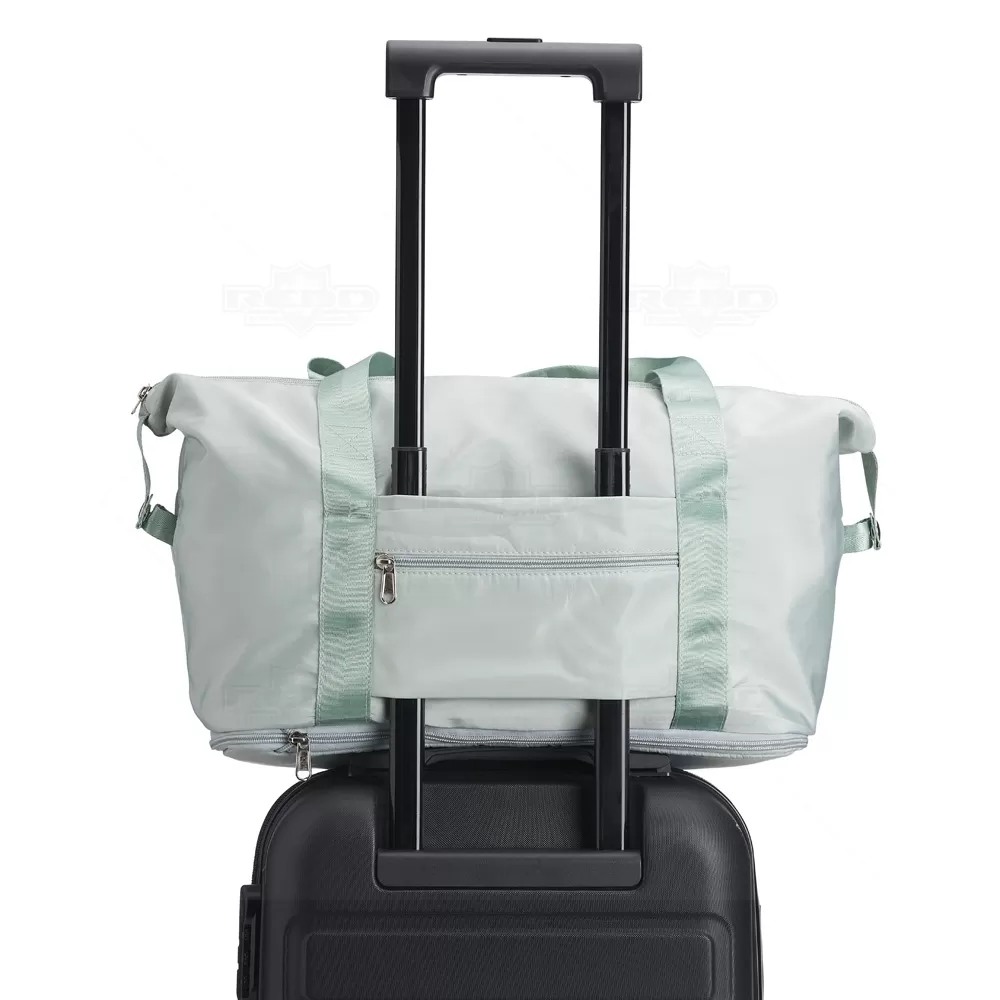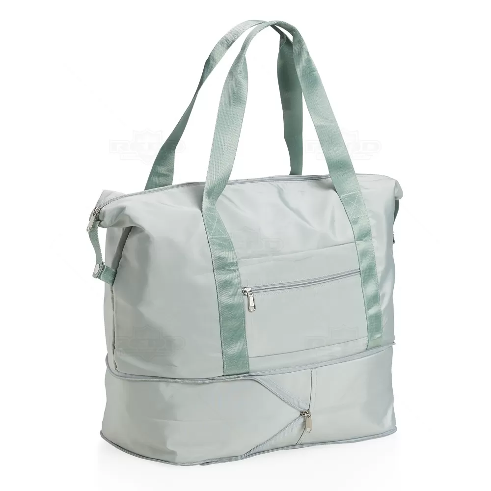 Bolsa mala de viagem dobrável personalizada produzida em poliéster resistente a água. Possui alça de mão em nylon, abertura principal com zíper na parte superior com dois pequenos bolsos internos, bolso frontal com zíper para pequenos objetos e bolso traseiro também utilizado como um estojo para armazenamento do próprio produto, área para encaixe em malas com puxador, levando em consideração que o material, sendo dobrável é inevitável que o produto apresente aspecto de amassado. Ideal para brindes personalizados, turismo, hotelaria, companhias aéreas e eventos corporativos. *Imagem ilustrativa, mala não acompanha o produto.
