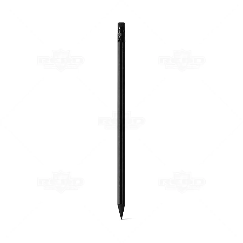 Lápis personalizado formato redondo ergonômico apontado, possui corpo preto, borracha da cor do corpo e dureza do grafite HB na cor preta. Ideal para divulgar sua empresa em eventos corporativos, brindes personalizados e campanhas promocionais.