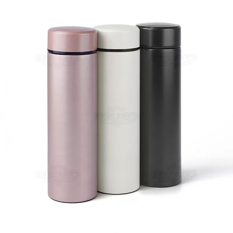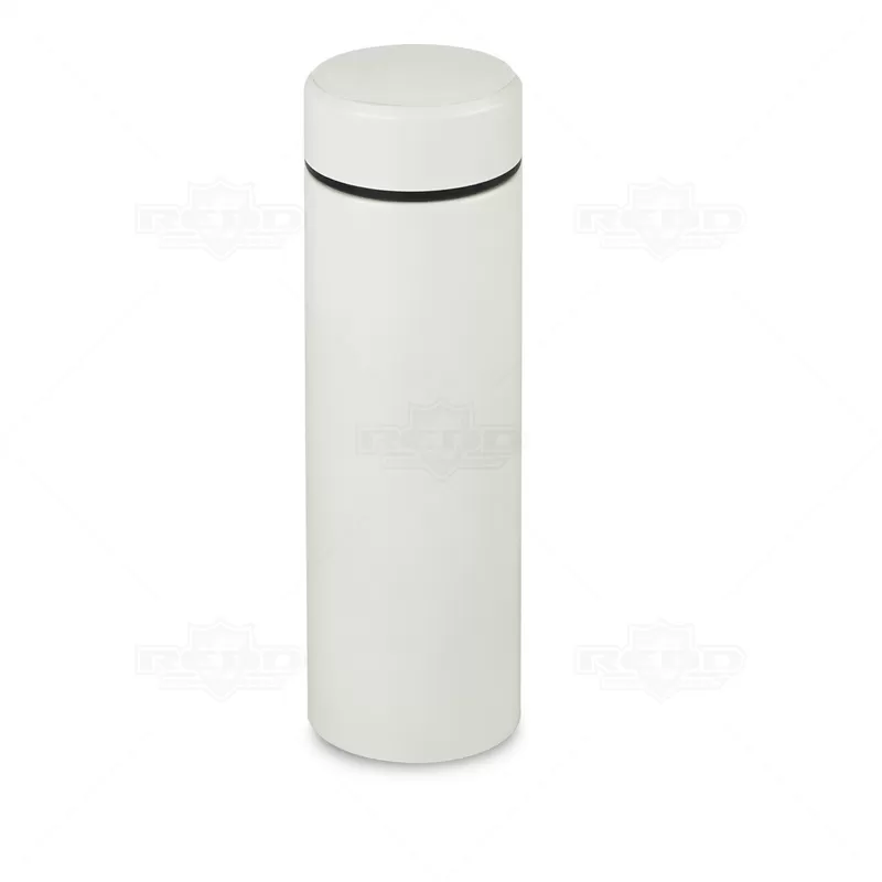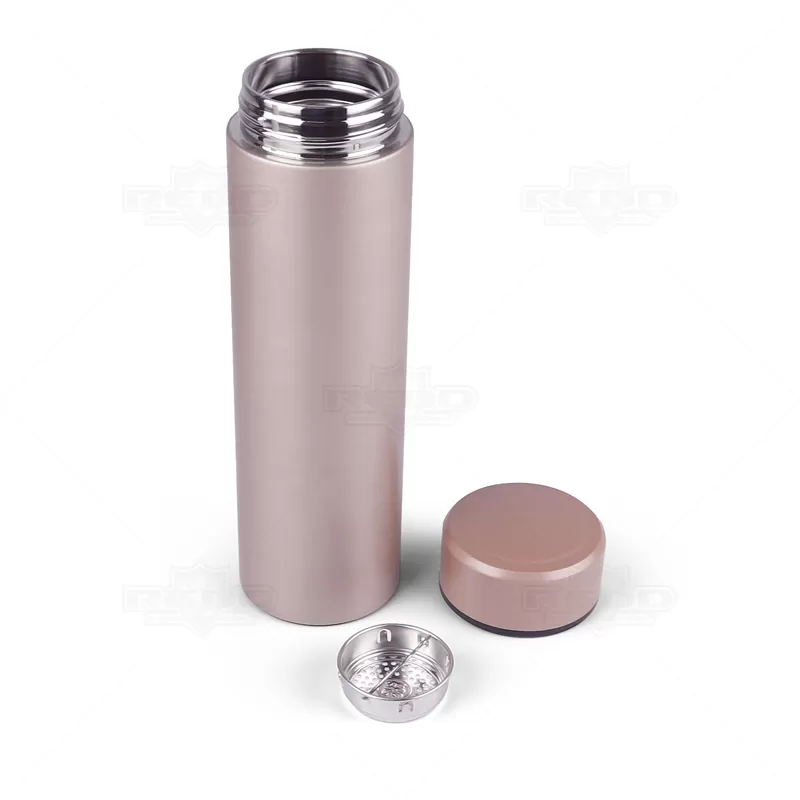 Garrafa térmica personalizada com capacidade para 500ml produzida em aço inoxidável com revestimento fosco e infusor para chás. Possui anel de silicone para evitar vazamentos e paredes duplas com isolamento a vácuo para manter a temperatura da bebida. Conserva o líquido quente por até 12 horas e frio até 18 horas. Ótima para academias, práticas esportivas, brindes promocionais e eventos corporativos.