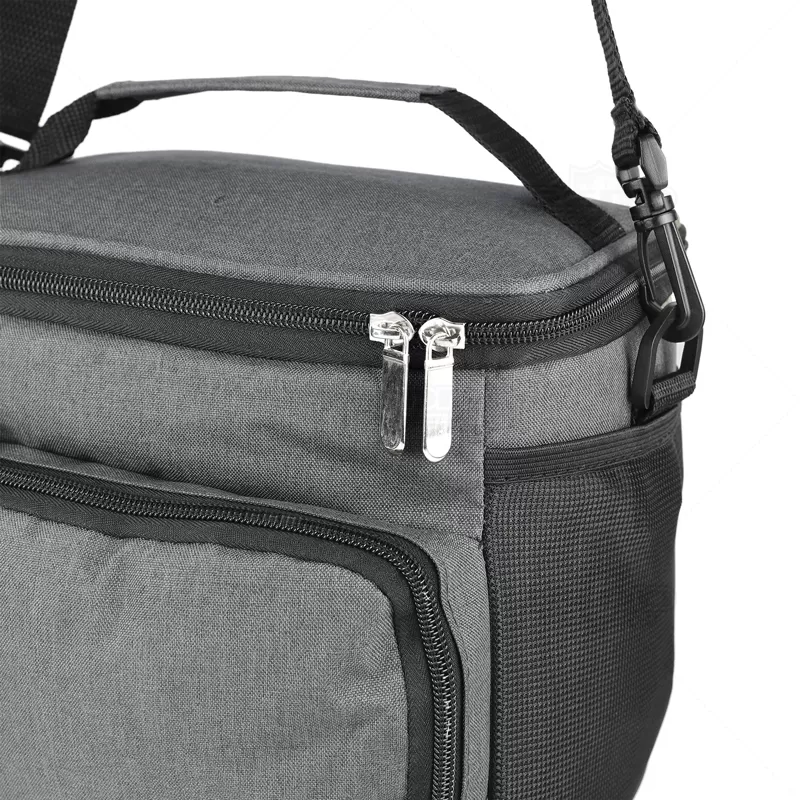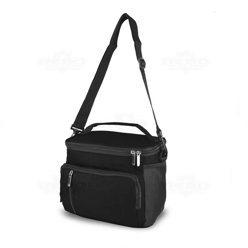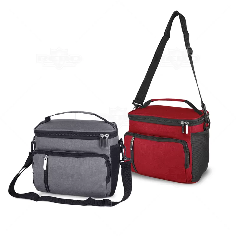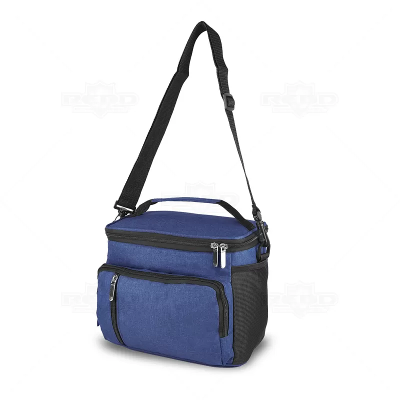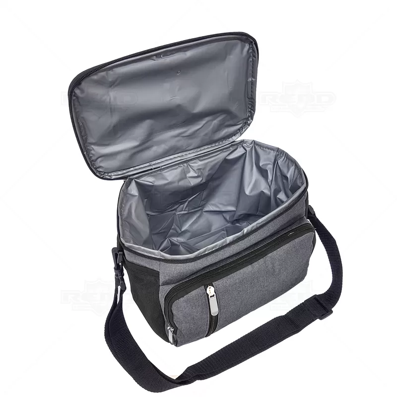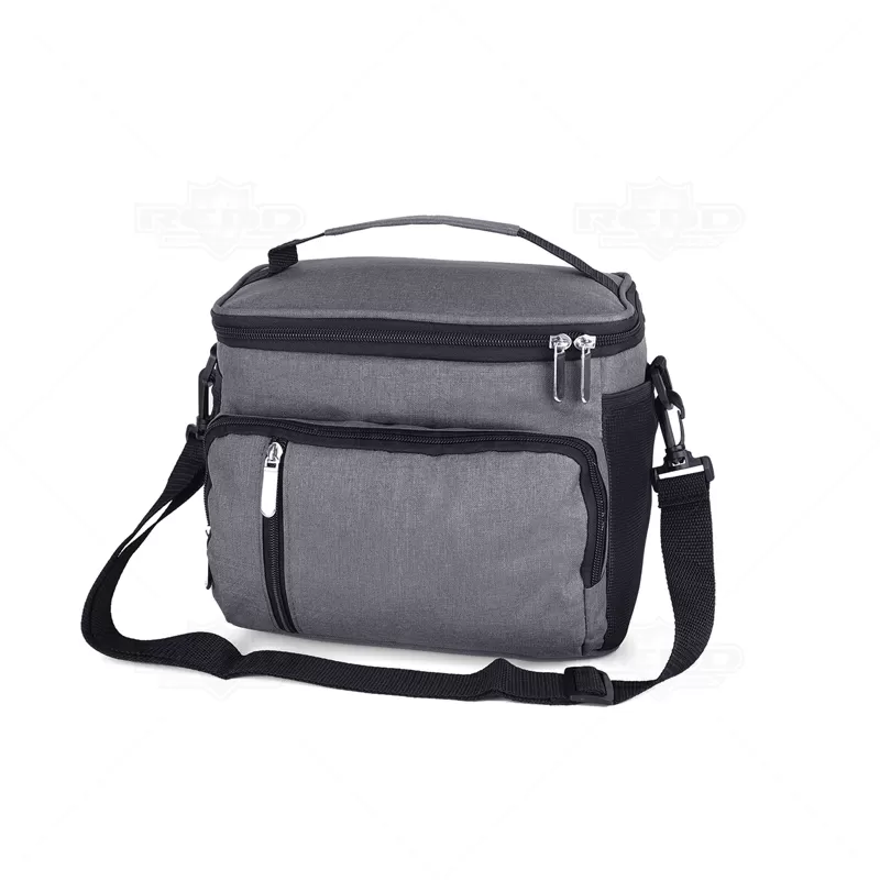 Bolsa térmica personalizada confeccionada em poliéster, possui dois bolsos frontais grande e pequeno, bolsos laterais telados, alça de mão reforçada e alça ajustável removível. Ideal para conservar a temperatura dos seus produtos por mais tempo. *Não é adequado colocar gelo pois por mais que a bolsa conserve a temperatura o gelo irá derreter e vazar pela costura, caso o objetivo principal seja a utilização de gelo, opte por nossas opções de coolers.