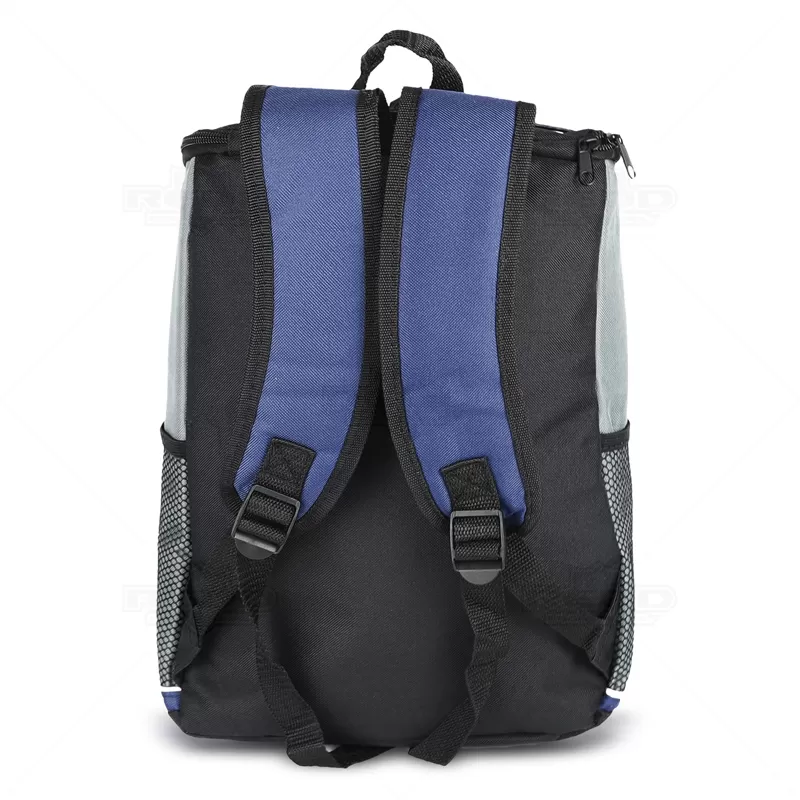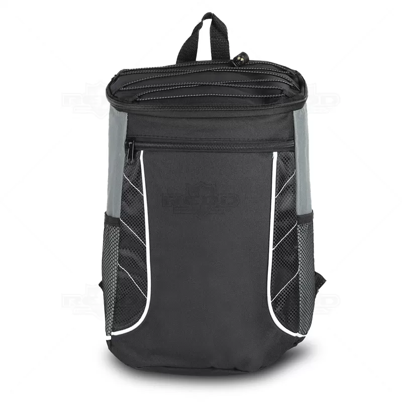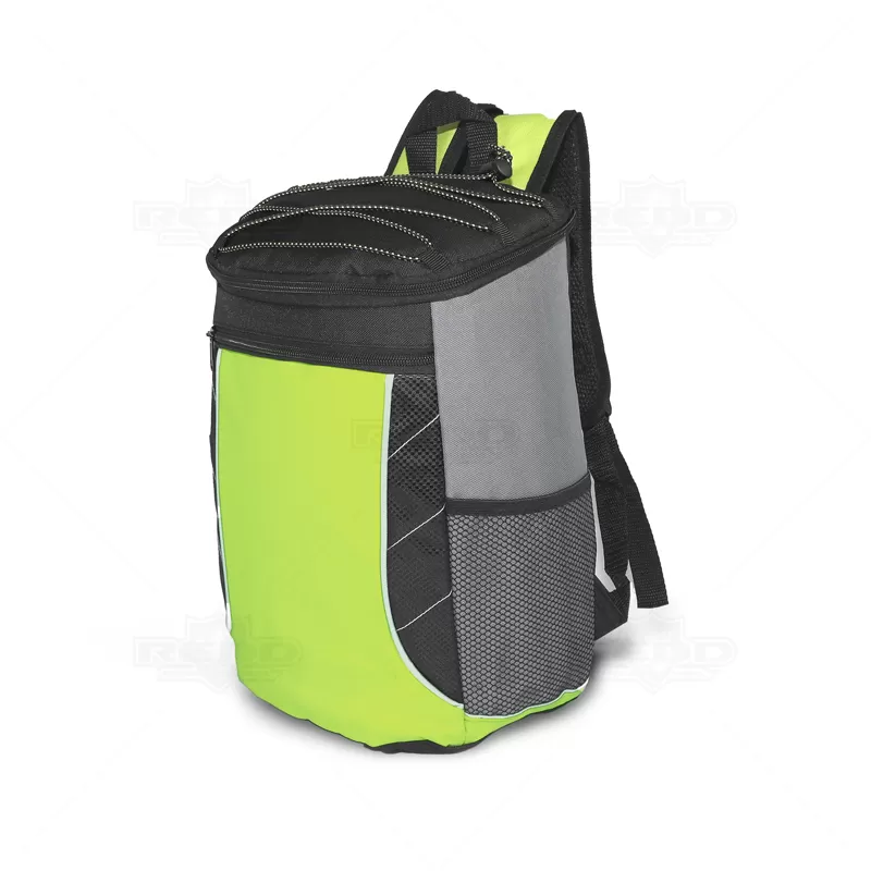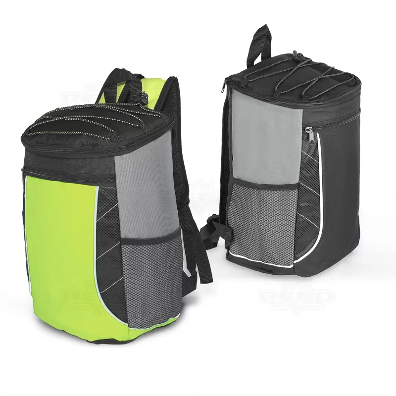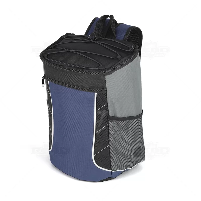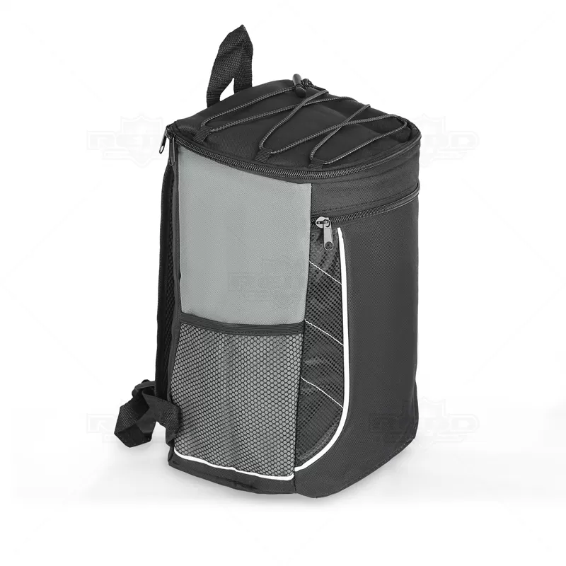 Mochila térmica personalizada produzida em poliéster, possui compartimento interno com capacidade para até 18 litros, bolso frontal com zíper, dois bolsos laterais telados, bungee na parte superior, alça de ombro ajustável e parte interna soldada afim de evitar vazamento. Ideal para brindes promocionais e eventos corporativos.