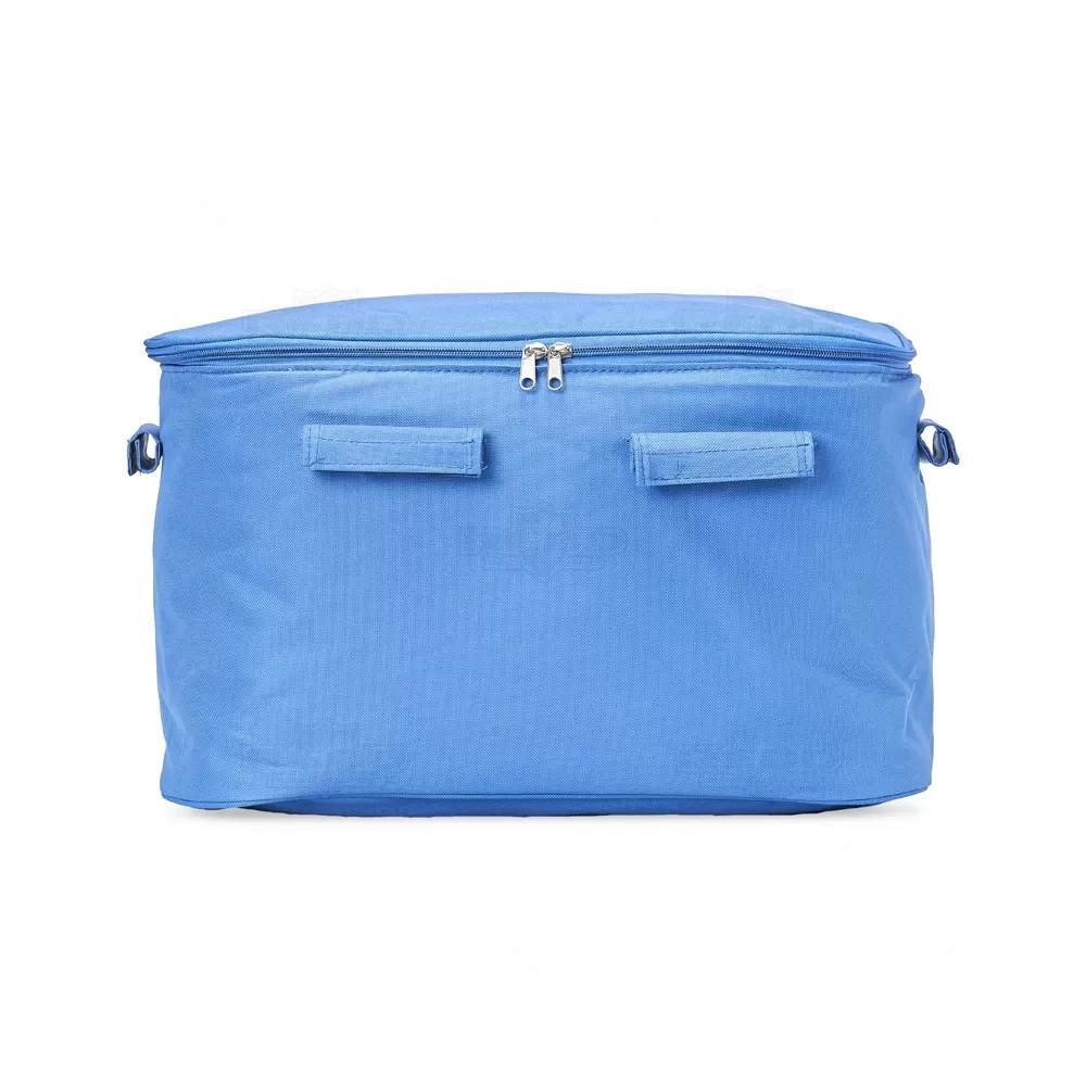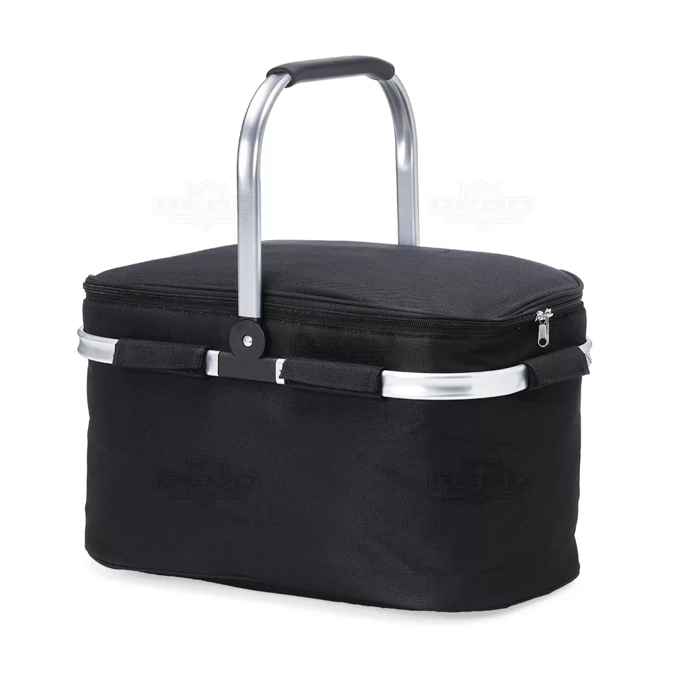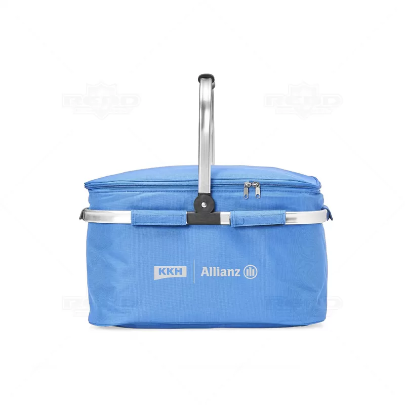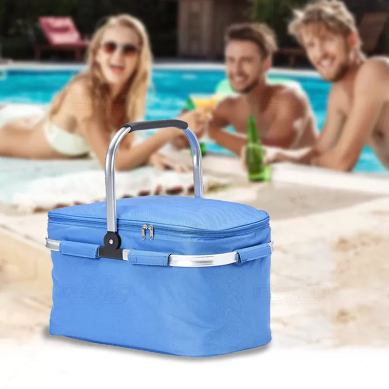 Bolsa térmica flexível personalizada produzida em poliéster com capacidade de 33 litros, possui revestimento térmico que conserva a temperatura de bebidas e alimentos por mais tempo. Acabamento em costura, armação de transporte removível em alumínio com pegador emborrachado e compartimento principal com fechamento por zíper duplo. Ideal para ser utilizada em praia, piscina, pesca, acampamento, viagens, entre outros. Imagem ilustrativa objetos não acompanham o produto. *Não é adequado colocar gelo pois por mais que a bolsa conserve a temperatura o gelo irá derreter e vazar pela costura, caso o objetivo principal seja a utilização de gelo, opte por nossas opções de coolers.