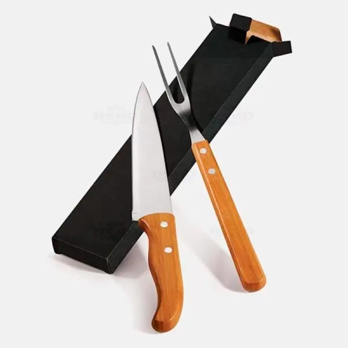 Conjunto churrasco com 2 peças personalizado, produzido em bambu e metal de alta durabilidade. Acompanha uma faca com lâmina afiada em aço inox, ideal para cortes precisos de carnes, e um garfo trinchante em aço inox com cabo em bambu natural, proporcionando firmeza e conforto no manuseio. O design elegante une funcionalidade e sustentabilidade, destacando o acabamento polido e o toque rústico do bambu. Fornecido em estojo de cartonagem kraft, que protege e valoriza a apresentação do produto. Perfeito para ser utilizado em churrascos, confraternizações e eventos gastronômicos, é uma excelente opção de brinde promocional ou presente personalizado para clientes e colaboradores, agregando sofisticação e utilidade. Um kit versátil e duradouro, ideal para quem aprecia qualidade, estilo e responsabilidade ambiental em utensílios para o preparo de carnes e momentos de lazer.
