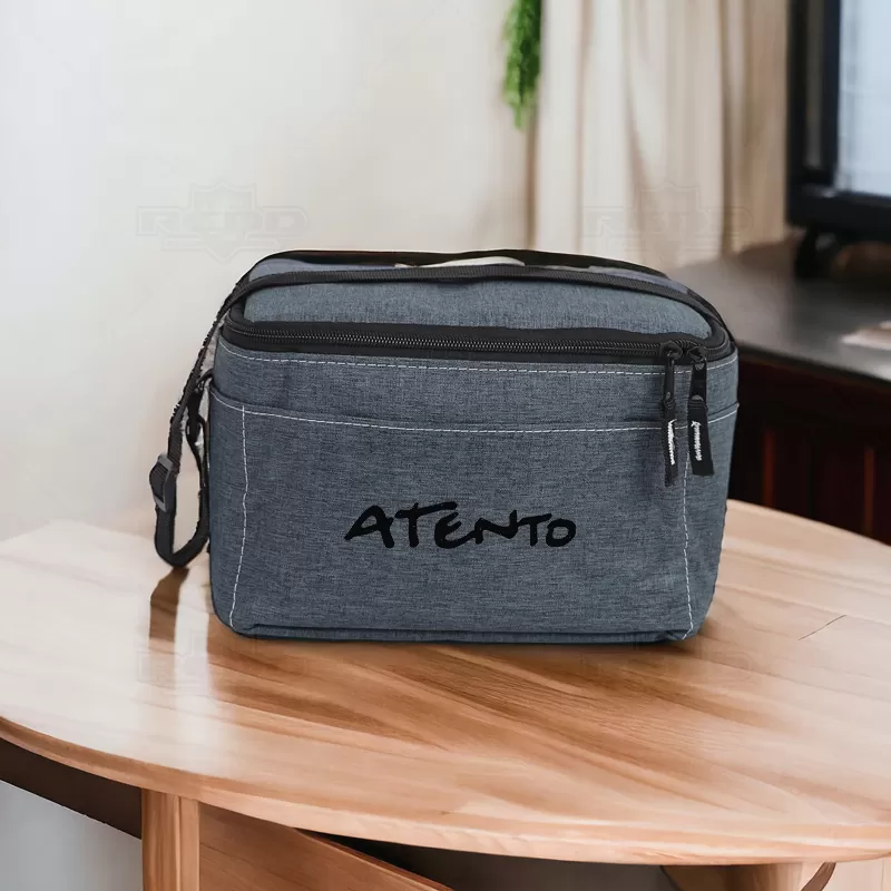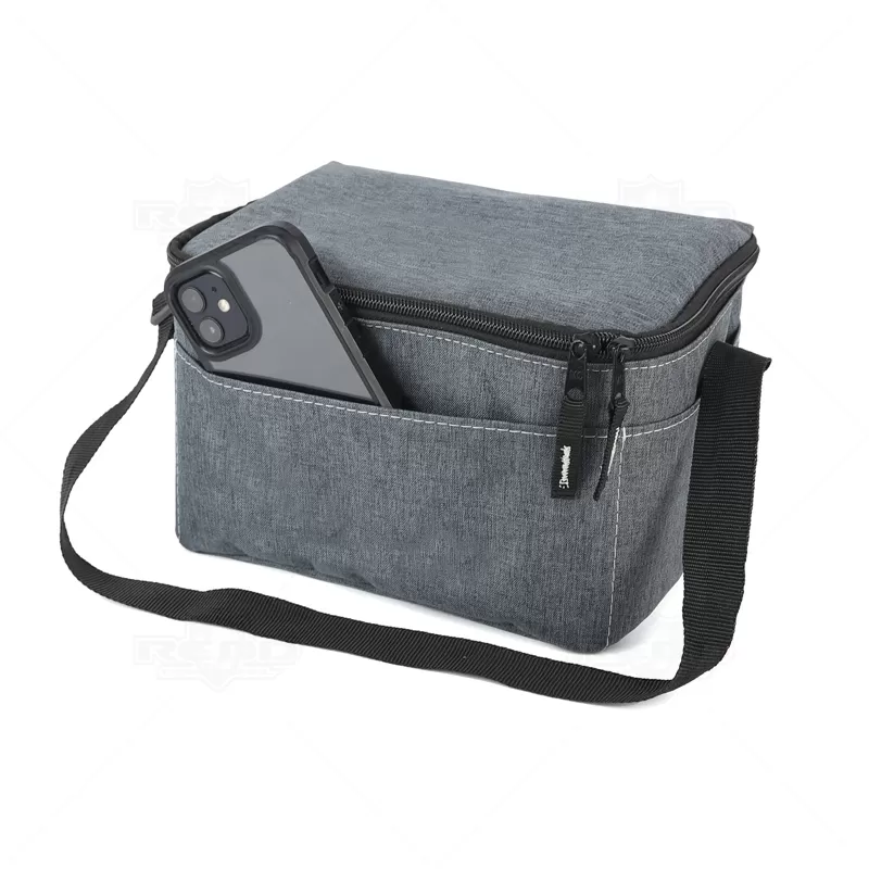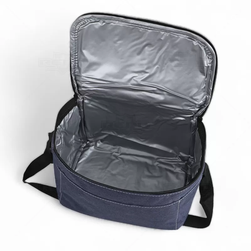 Bolsa térmica personalizada confeccionada em poliéster com capacidade para até 4,5 litros, possui bolso frontal exterior, bolsos laterais e alça ajustável. Ideal para conservar a temperatura dos alimentos e aproveitar aquele momento maravilhoso com a sua família. *Não é adequado colocar gelo pois por mais que a bolsa conserve a temperatura o gelo irá derreter e vazar pela costura, caso o objetivo principal seja a utilização de gelo, opte por nossas opções de coolers. Imagem ilustrativa, itens não acompanham o produto.