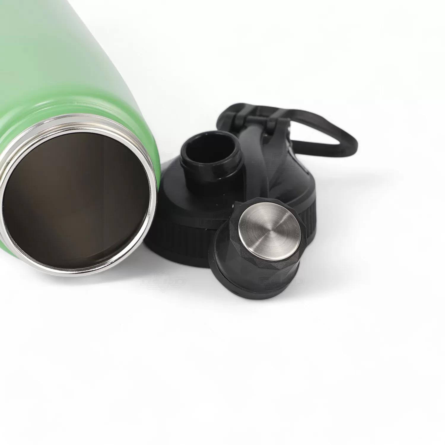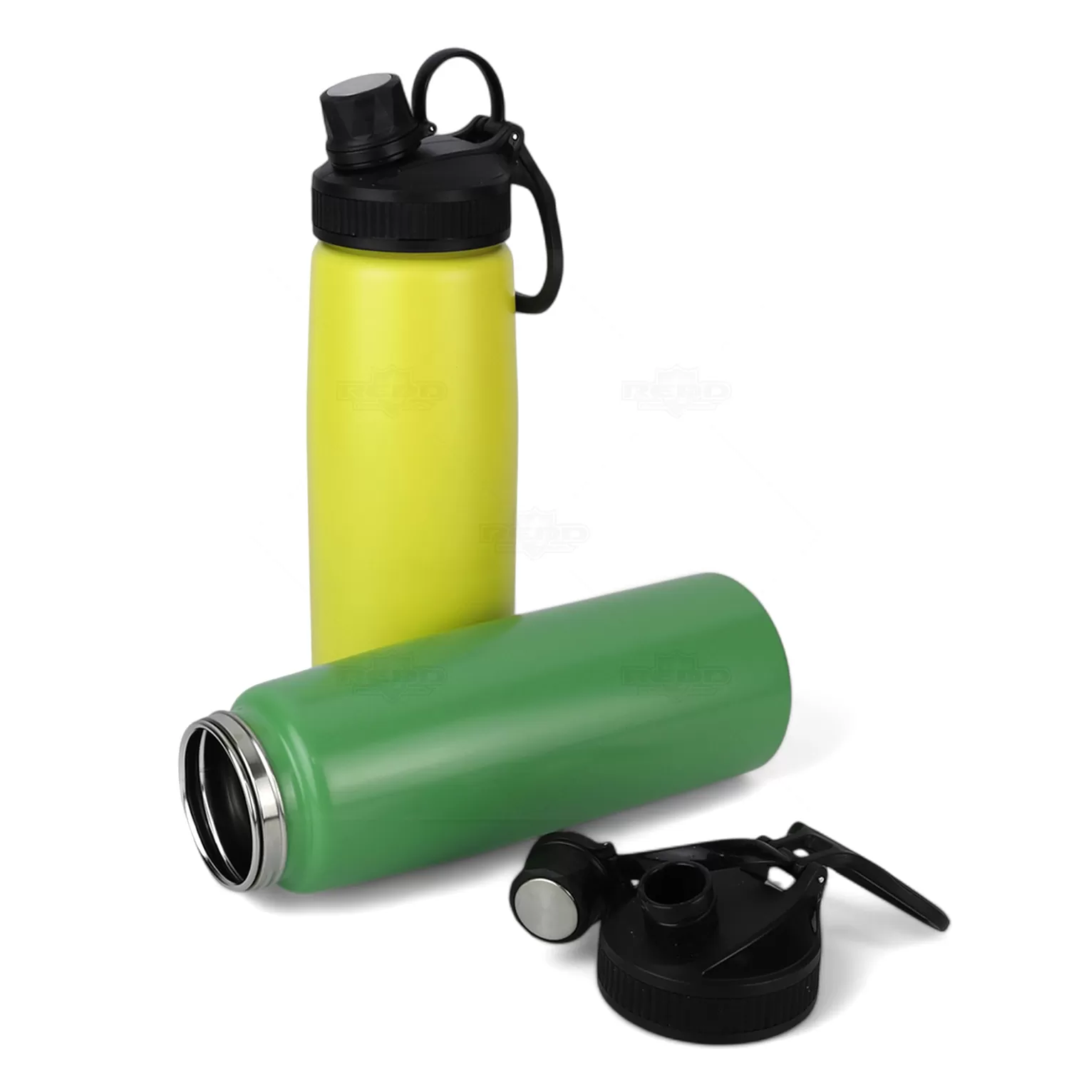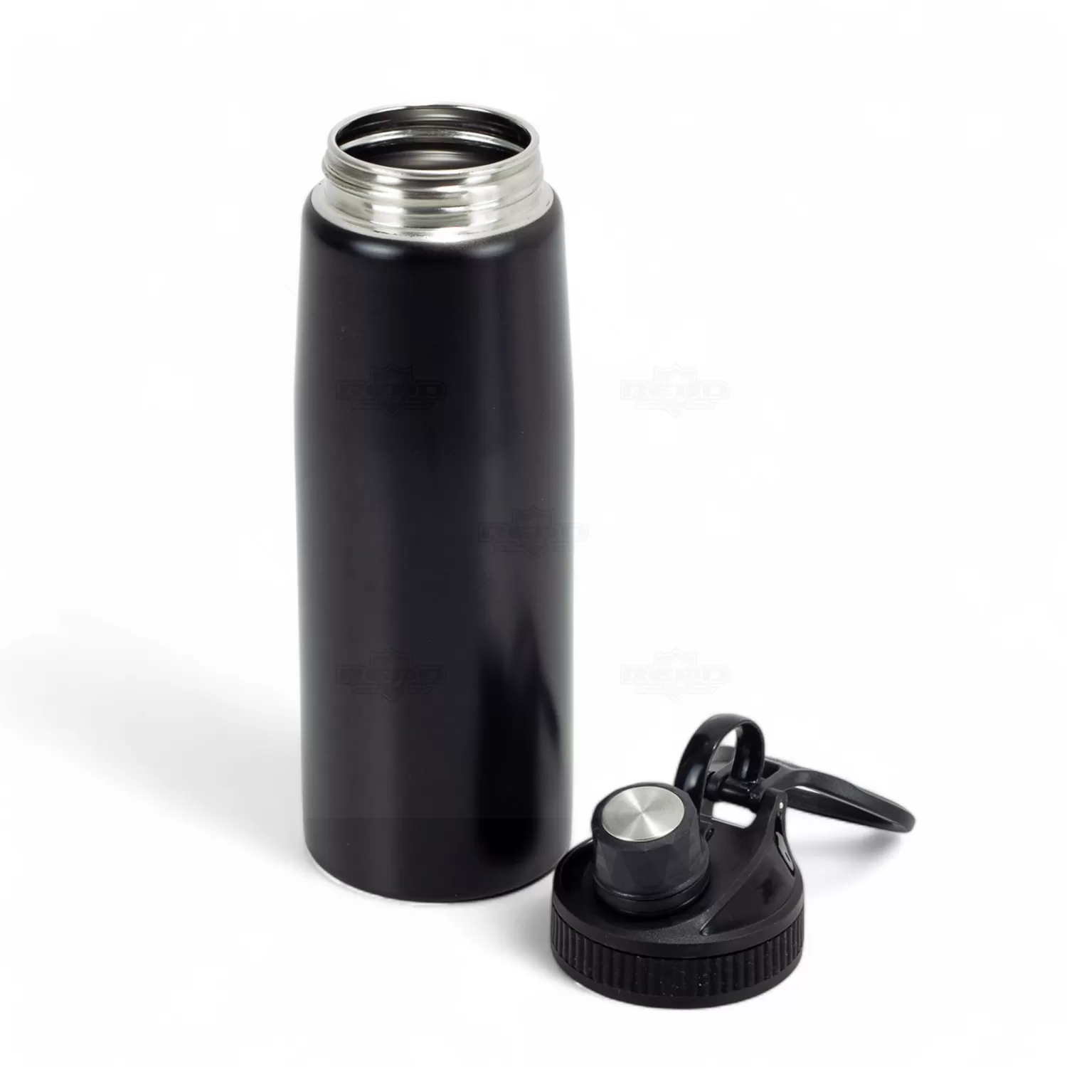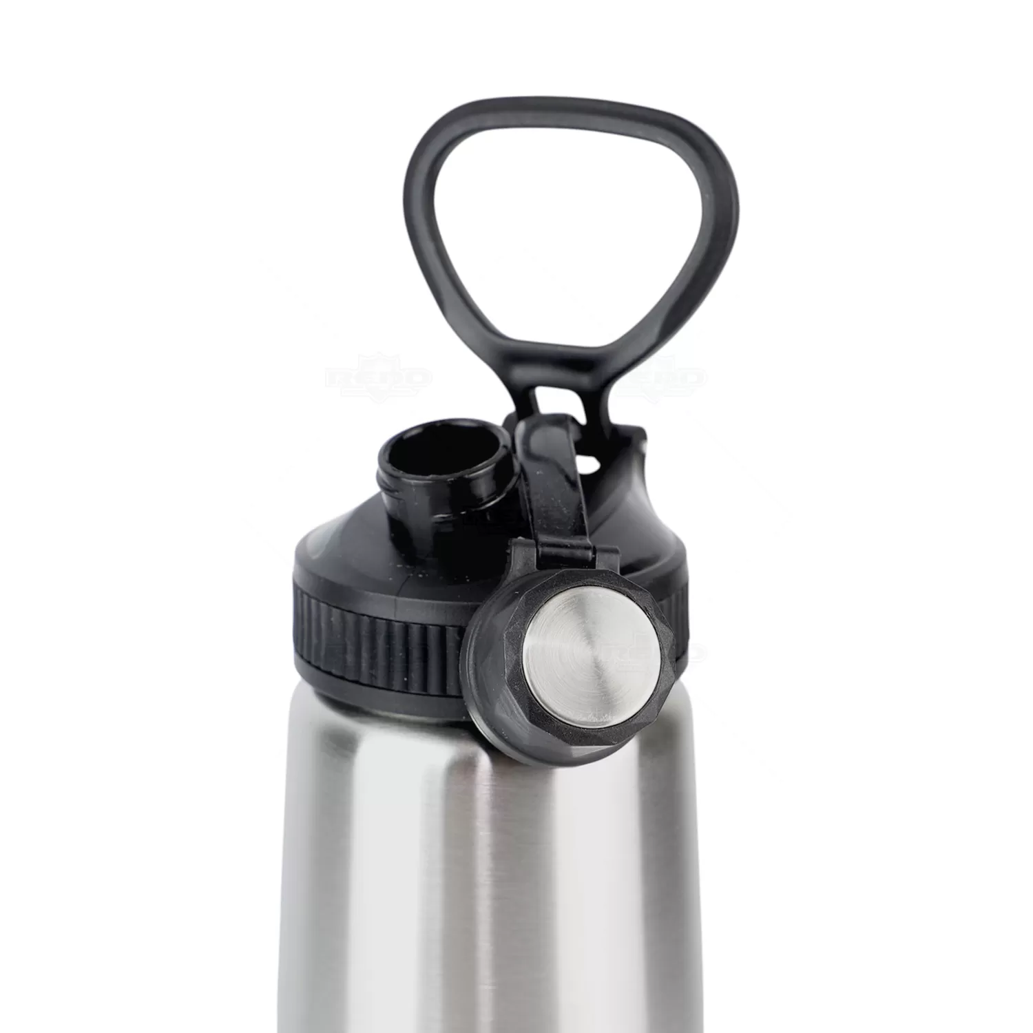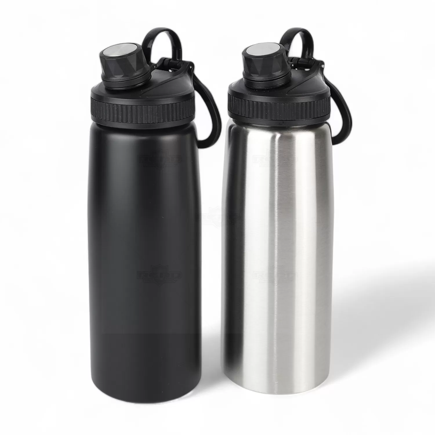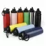 Squeeze personalizado em inox, capacidade de 900ml. Tampa principal com bocal, anel de vedação para evitar vazamento, e tampa secundária estilo cantil com bico atóxico, também com anel de vedação e com alça de transporte acoplada a tampa. De alta resistência e durabilidade, podendo ser usada para todos os fins.