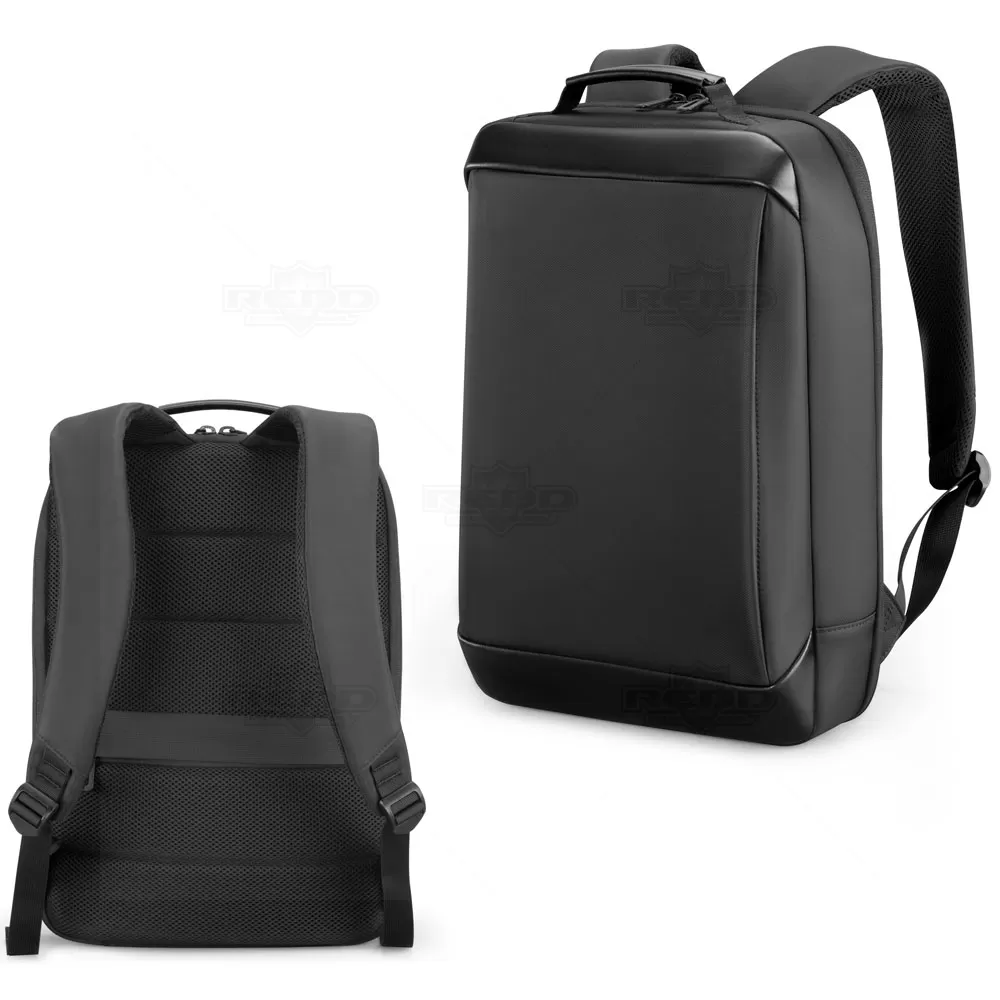 A mochila para notebook produzida em poliéster, com detalhes em material sintético, oferece um design moderno e funcional. Possui um compartimento principal completamente forrado e acolchoado, projetado para acomodar notebooks de até 15,6", garantindo proteção contra impactos. Além disso, inclui bolsos interiores para organizar seus itens pessoais de forma eficiente. Com um bolso frontal com zíper vertical, facilita o acesso rápido a itens essenciais, enquanto o bolso oculto nas costas com zíper proporciona segurança adicional para pertences de valor. A presença de uma tira de transporte trolley facilita o encaixe da mochila em malas de viagem, ideal para deslocamentos. A entrada USB integrada oferece conveniência para carregar dispositivos móveis enquanto você está em movimento, bastando conectar um powerbank (não incluso). As alças e a parte posterior almofadadas proporcionam conforto ergonômico durante o uso prolongado. Ideal para brindes personalizados e eventos corporativos, esta mochila combina estilo e praticidade, sendo uma escolha excelente para presentear clientes e colaboradores com um item útil e elegante. Imagem ilustrativa, itens decorativos não acompanham o produto.