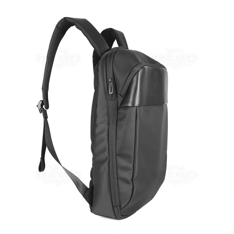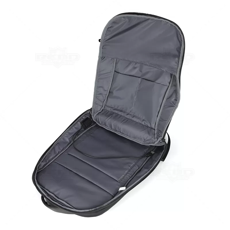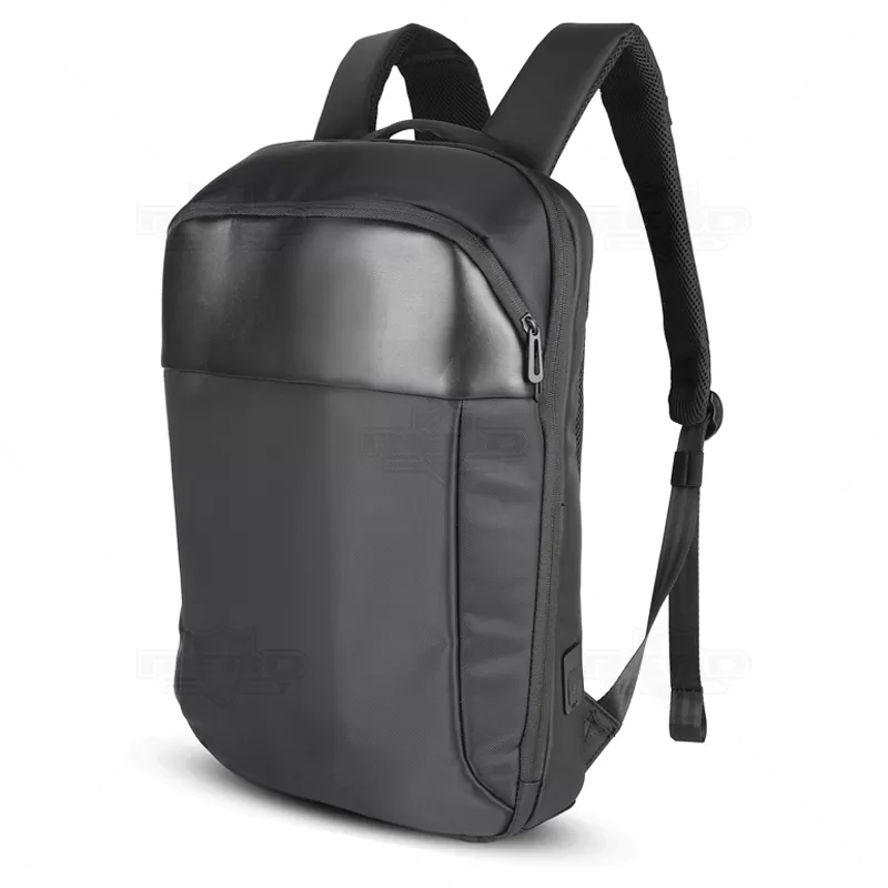 A mochila para notebook produzida em poliéster, com detalhes em material sintético, é projetada para oferecer praticidade e segurança aos seus dispositivos eletrônicos. Com um bolso principal completamente forrado e duas divisórias acolchoadas, ela proporciona espaço seguro para notebooks de até 15,6" e um tablet, garantindo proteção contra impactos e arranhões. Além do compartimento principal, a mochila possui um bolso frontal de fácil acesso para pequenos itens, permitindo organização conveniente dos seus pertences. A tira de transporte trolley facilita o transporte da mochila em malas de viagem, enquanto a entrada USB integrada oferece a conveniência de carregar dispositivos móveis enquanto você está em movimento, bastando conectar a um powerbank (não incluso). Para conforto adicional, a parte posterior e as alças são almofadadas, proporcionando suporte ergonômico durante o uso prolongado. Ideal para brindes personalizados e eventos corporativos, esta mochila combina funcionalidade com um design moderno, sendo uma escolha excelente para presentear clientes e colaboradores com um item útil e elegante. Imagem ilustrativa, itens decorativos não acompanham o produto.
