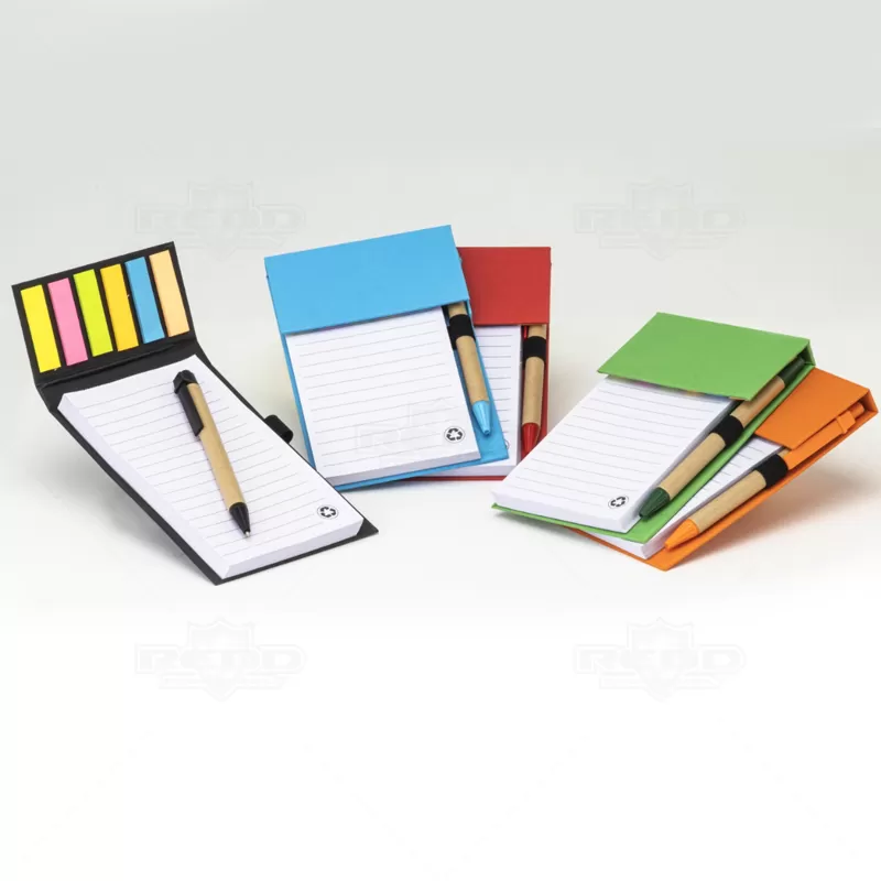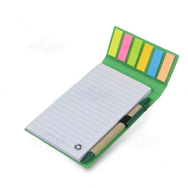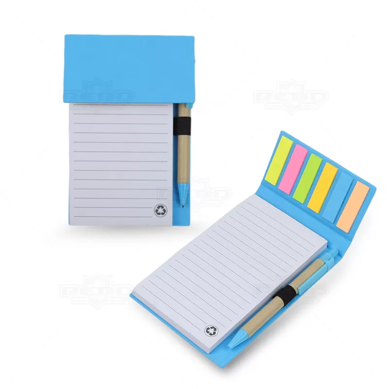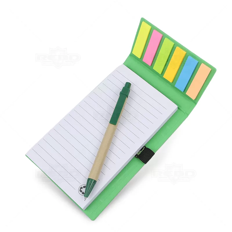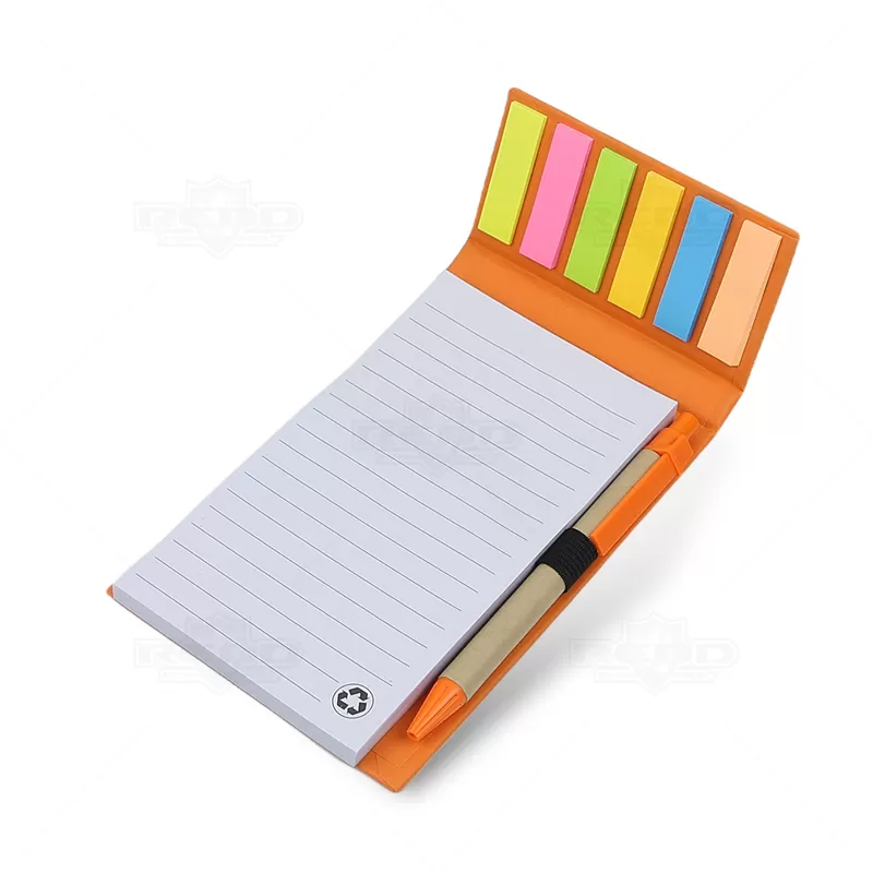 O bloco de anotações ecológico personalizado é produzido em papel kraft, refletindo um compromisso com a sustentabilidade. Contém 1 bloco com aproximadamente 100 folhas brancas pautadas, além de 6 marcadores de páginas coloridos com 20 unidades de cada cor. Possui porta caneta elástico e inclui uma caneta de papelão com detalhes plásticos, carga esferográfica azul de 1.0mm e acionamento por clique. Ideal para eventos promocionais, brindes corporativos e campanhas de marketing, este bloco combina funcionalidade com responsabilidade ambiental, oferecendo uma solução prática e consciente para organização pessoal e profissional.