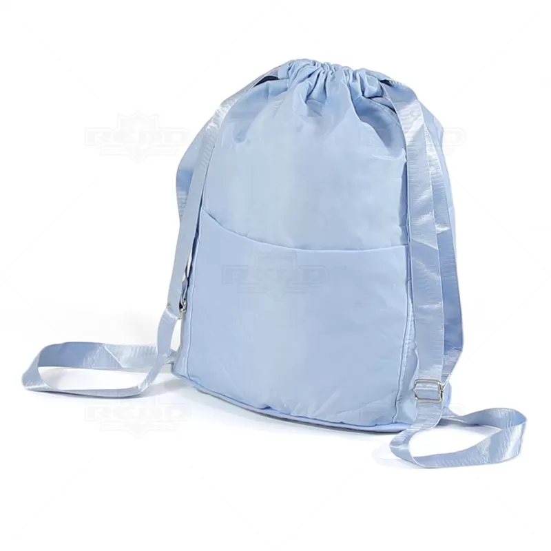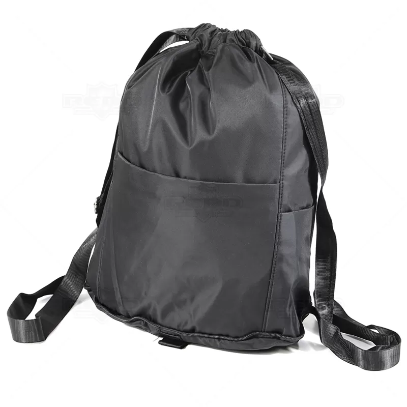 Mochila saco personalizada produzida em poliéster resistente a água. Ela tem uma abertura no topo que fecha com as tiras que formam a alça da mochila, permitindo que você possa facilmente abrir e fechar para acessar o conteúdo. Esse produto é bastante versátil e pode ser usado para várias finalidades, como ir à academia, escola, caminhadas ou viagens curtas. Com a possibilidade de personalização, devido a sua grande área, deixando sua marca sempre em evidência. Possui bolsos externos para guardar objetos menores, como carteira, chaves e telefone celular, sendo dois laterais simples, um frontal e um traseiro, ambos com fechamento em zíper e conta ainda com outro bolso interno para itens molhados, evitando assim que venha a umedecer o restante dos seus pertences.