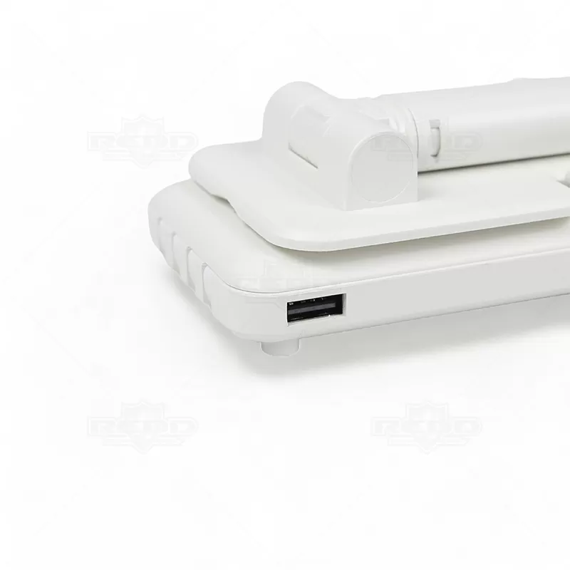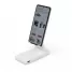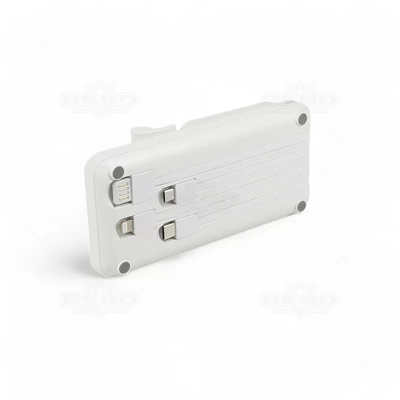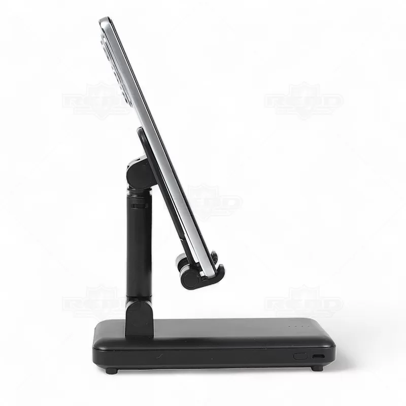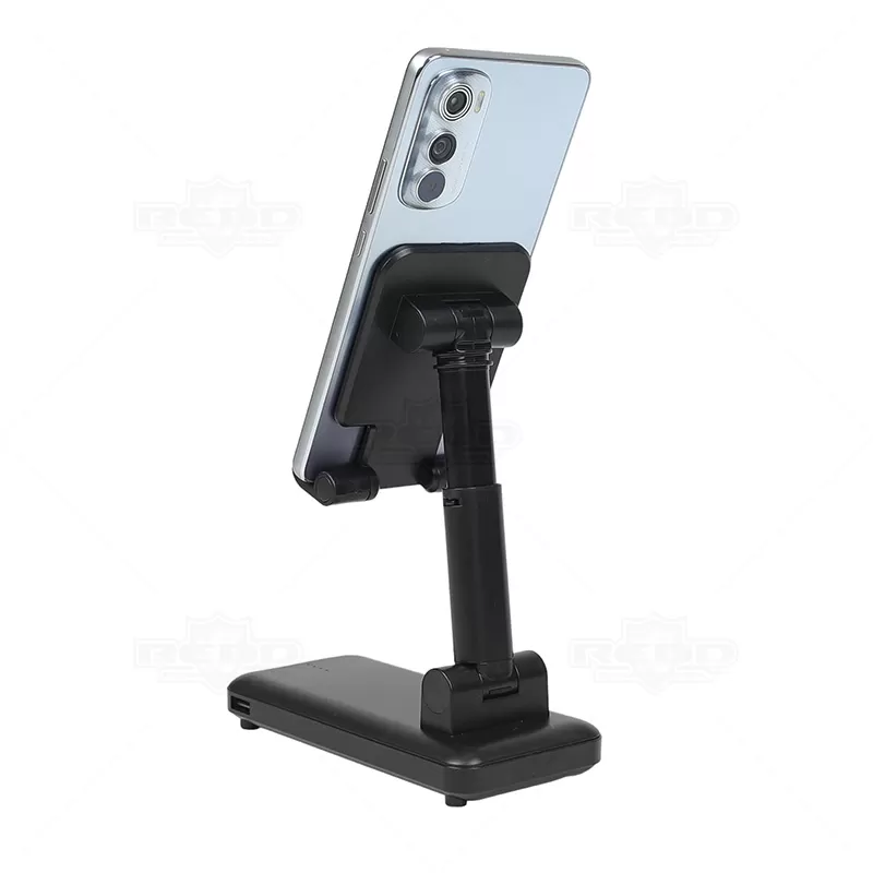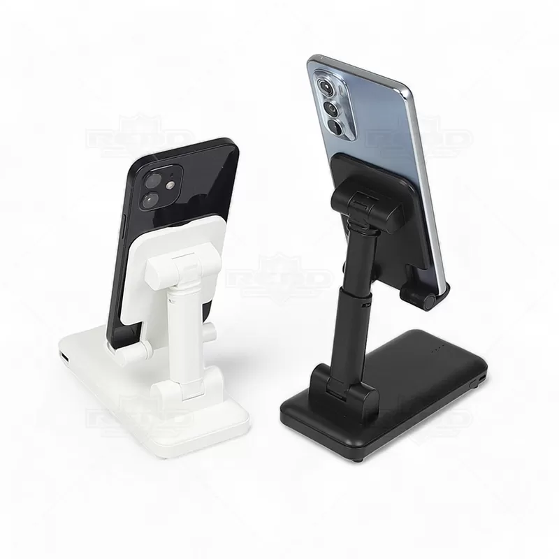 Carregador personalizado portátil com uma base de carregamento em que permite simultaneamente ser usada como um carregador e um porta celular com regulagem de altura e ângulo e tendo ainda a base antiderrapante. É um objeto de design arrojado e dadas as suas características técnicas pode ser usado em viagens (como bateria portátil). Bateria com indicador de carga LED, possibilita o carregamento de até 2 dispositivos em simultâneo, com entrada micro USB e saídas tipo-C, lightning, V8 e micro USB. Capacidade de 10.000 mAh. Fornecida em caixa presente com cabo incluso. Tendo a parte externa confeccionada em plástico resistente, podendo personalizar com o seu logo e trazer destaque a sua empresa. O carregador ideal para brindes corporativos e eventos promocionais.
