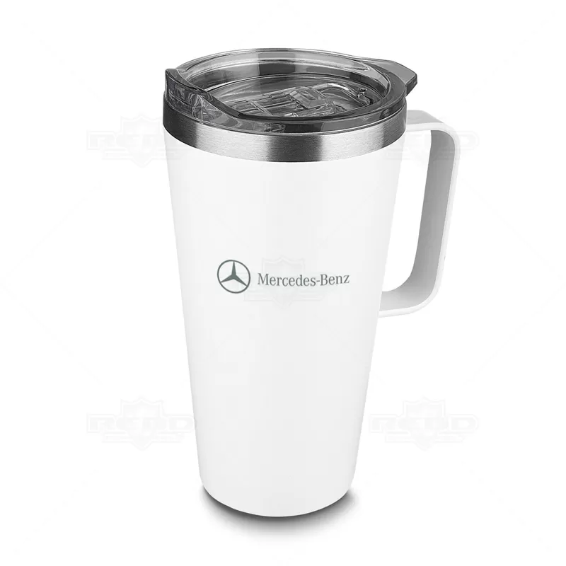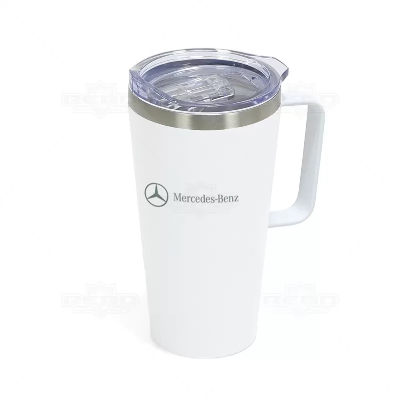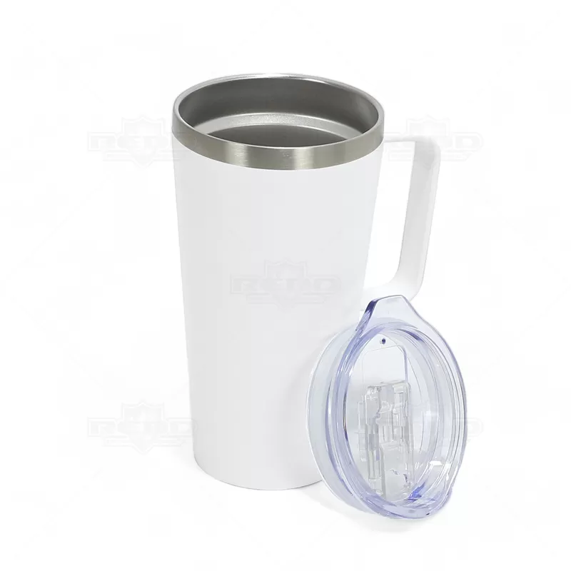 A caneca térmica personalizada é produzida em aço inox com capacidade para 530ml. Possui tampa com anel de vedação para evitar vazamentos acidentais e tampa plástica com bocal superior, que possui sistema de trava e destrava. Conta com uma alça lateral para fácil manuseio e parede dupla em inox que conserva a temperatura da bebida, seja gelada ou quente, por mais tempo. Ideal para brindes promocionais e eventos corporativos, pois permite a gravação do logo da sua empresa, combinando funcionalidade e elegância.
