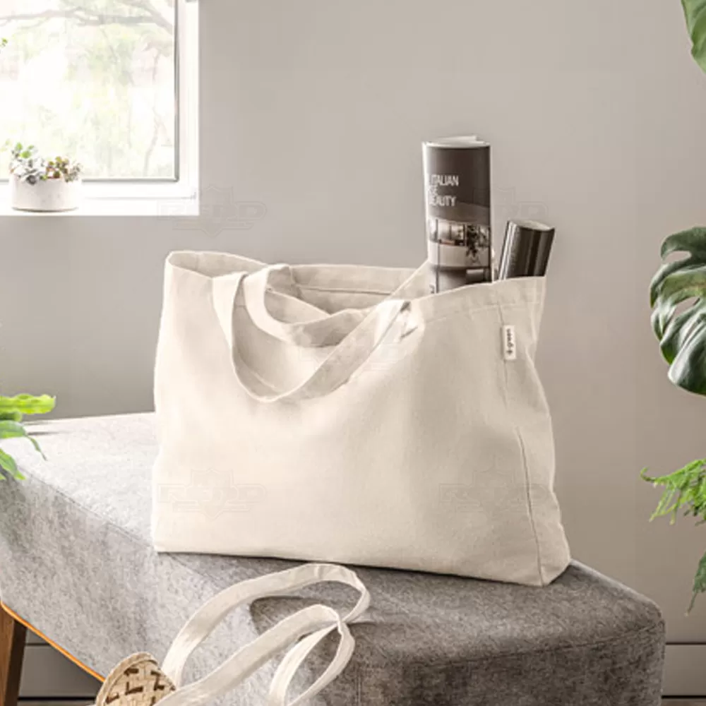 Sacola ecológica produzida em algodão reciclado (220 g/m²), com alças de 60 cm. Esta sacola combina uma estética descontraída com durabilidade, sendo ideal para quem busca produtos sustentáveis. O algodão reciclado reforça o compromisso com o meio ambiente, tornando-a uma escolha consciente para brindes promocionais e eventos corporativos. Com amplo espaço interno, é perfeita para transporte diário de itens essenciais, proporcionando praticidade e conforto com suas alças resistentes. Seu design versátil permite fácil dobragem, transformando-a em uma pequena bolsa compacta para momentos de necessidade. Destaque sua marca de maneira sustentável e funcional com esta sacola eco-friendly.