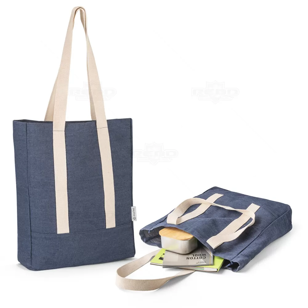 Apresentamos a sacola personalizada, confeccionada em denim reciclado de alta qualidade (270 g/m²). Esta sacola conta com um bolso interior com fecho para maior segurança, costuras reforçadas para durabilidade e alças de 64 cm em webbing de algodão, proporcionando conforto no transporte. Versátil e prática, é uma escolha popular entre aqueles que buscam uma sacola com uma estética descontraída e resistente. Ideal para brindes promocionais e eventos corporativos, destacando sua marca de forma sustentável e estilosa.