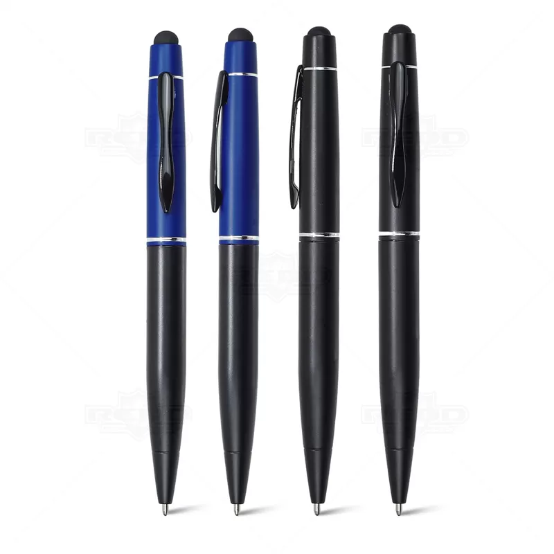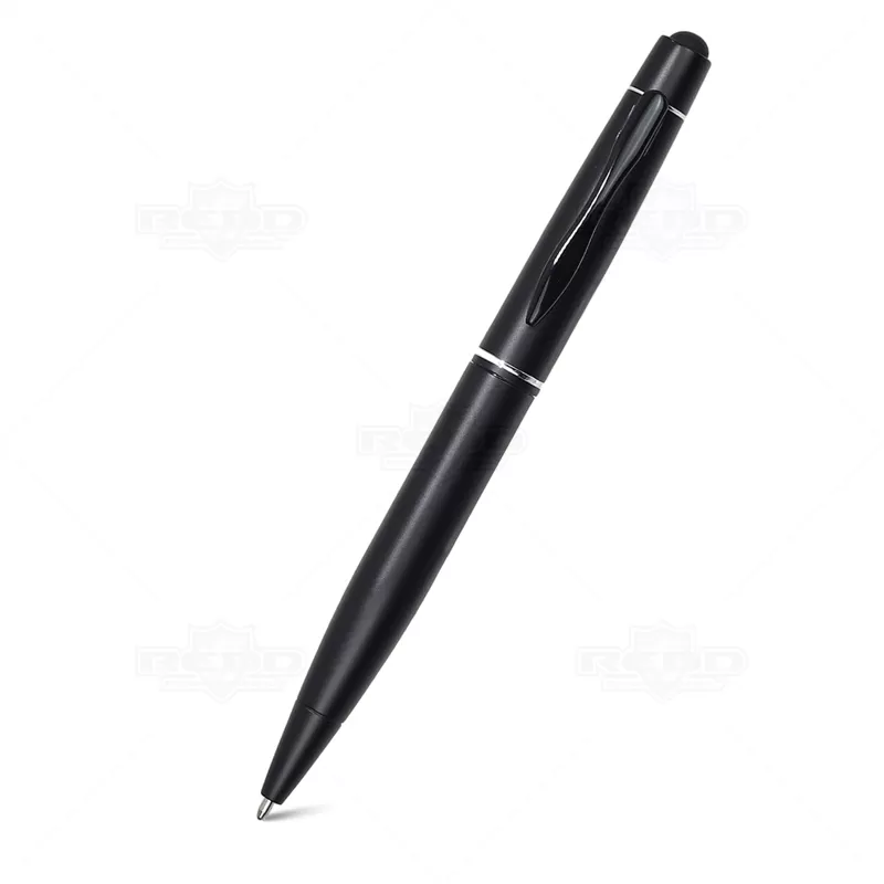 Caneta de metal personalizada, com escrita suave na cor azul, proporcionando conforto durante o uso. Apresenta um elegante detalhe no corpo, acionamento por mecanismo de giro para conveniência, e uma prática ponteira touch para uso em tablets e smartphones. Acompanha embalagem em papel kraft, ideal para brindes promocionais e eventos corporativos, destacando-se como uma escolha sofisticada e funcional para presentear colaboradores e clientes.