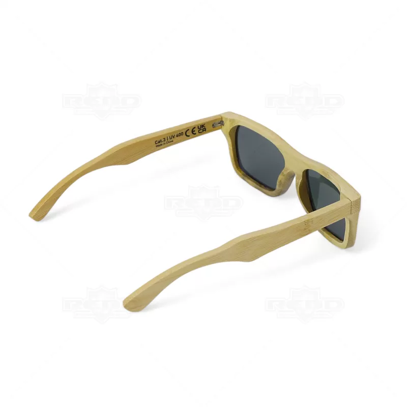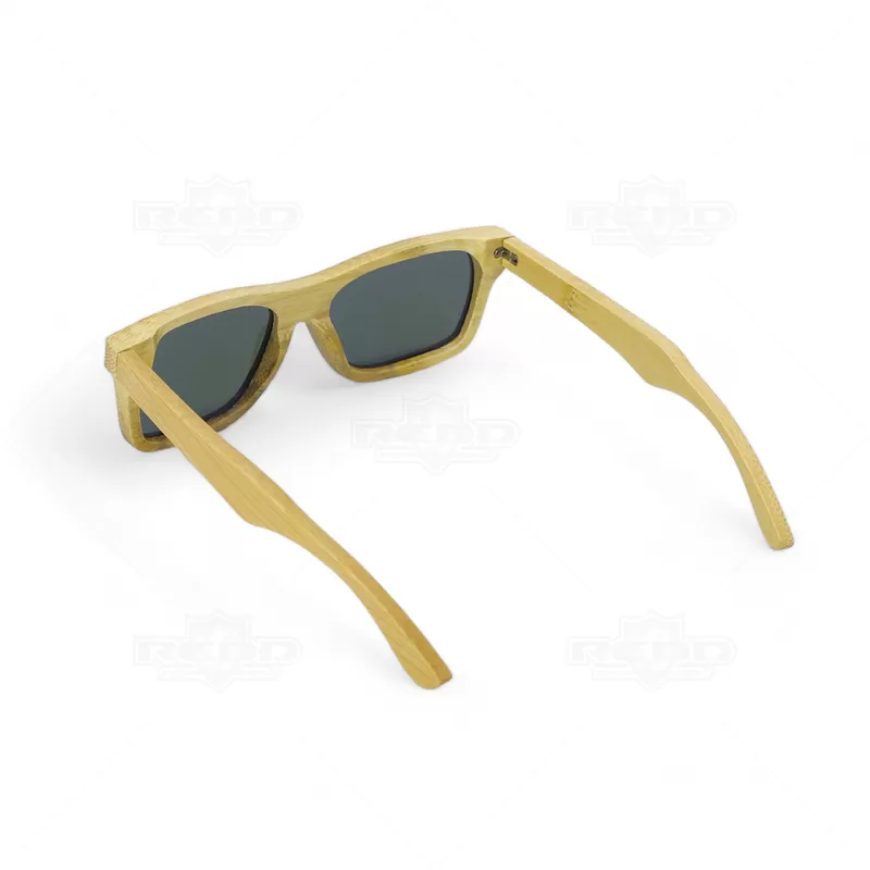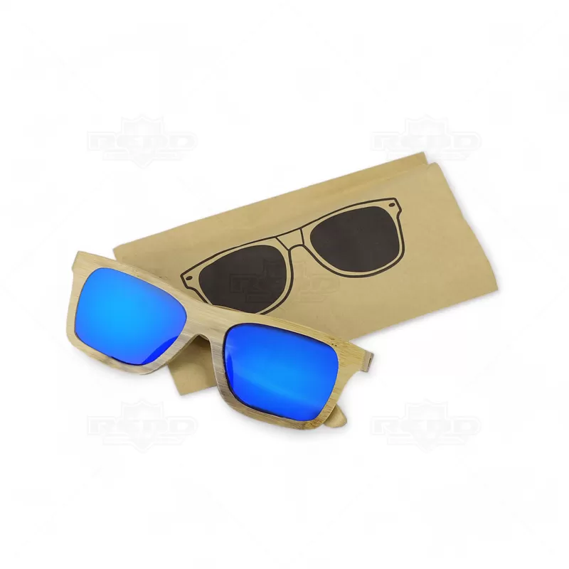 Óculos de sol em bambu com lentes espelhadas e proteção UV400, são uma opção sustentável e estilosa. Fabricados com armações de bambu, um material renovável, leve e durável, esses óculos são amigos do ambiente e proporcionam conforto ao usar. Além de proteger seus olhos dos raios UV, oferecem um visual único e elegante. Fornecidos em uma bolsa de papel kraft, são ideais para brindes promocionais e eventos corporativos, destacando sua marca com um acessório moderno e ecológico.