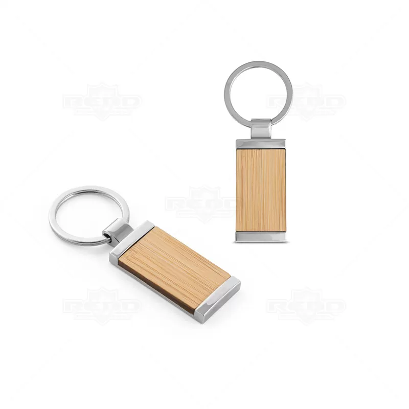 Chaveiro de metal personalizado retangular, com detalhe em bambu e revestimento em metal, oferece uma combinação de estilo e durabilidade. Ideal para carregar chaves de casa, do carro, do escritório e do armário, este chaveiro é tanto funcional quanto elegante. Fornecido em uma bolsa de cartão kraft, é perfeito para brindes promocionais e eventos corporativos, destacando sua marca de forma sofisticada e sustentável.