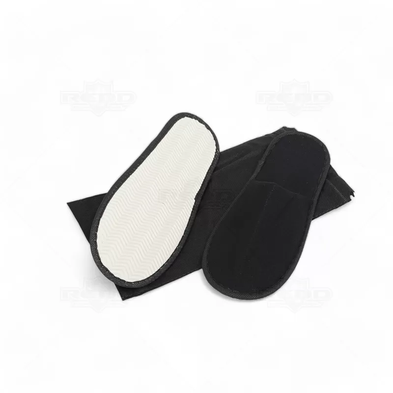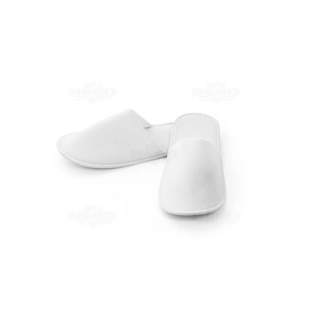 Chinelos de quarto unissex em poliéster com acabamento macio e solado anti-derrapante, conforme tabela Brasileira, calça confortavelmente até numeração 40. Fornecidos em bolsa de non-woven. Perfeito para eventos sociais (casamento, festas debutante, formaturas), para hotelaria, brindes personalizados e eventos corporativos.