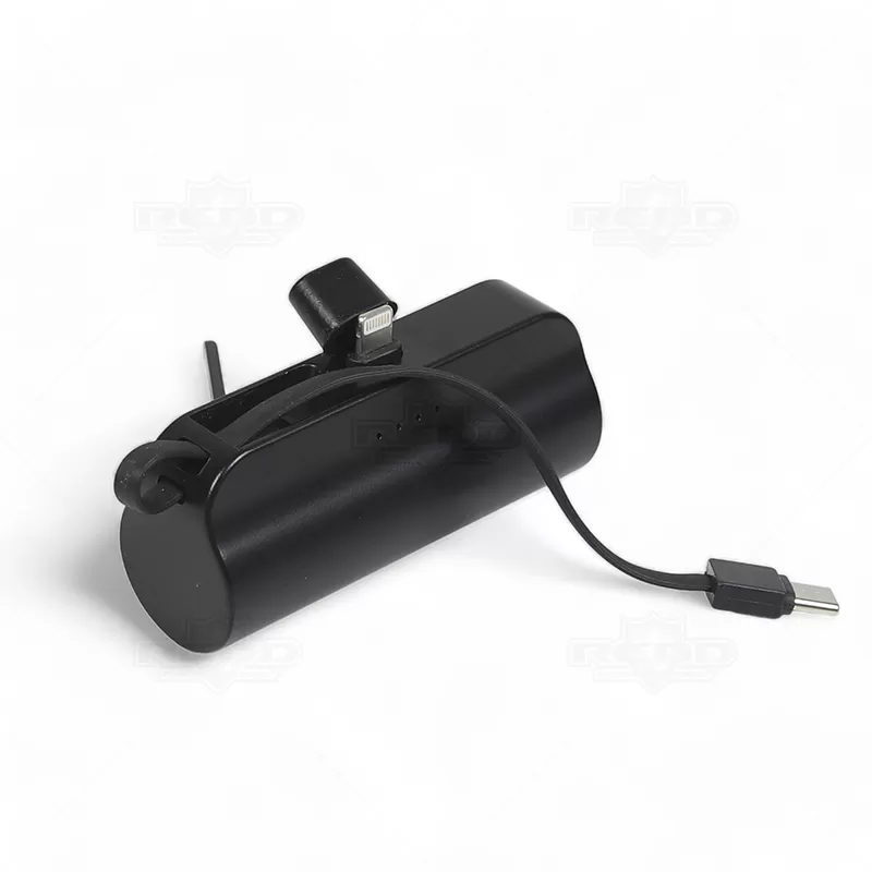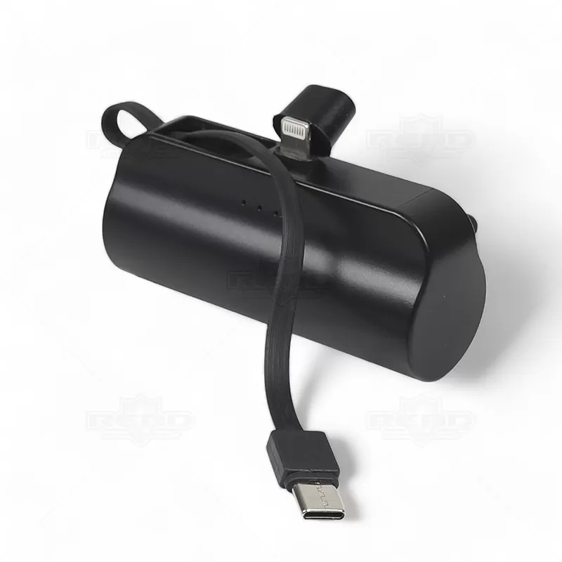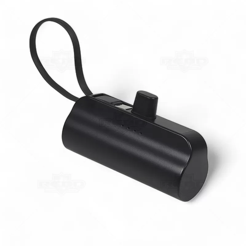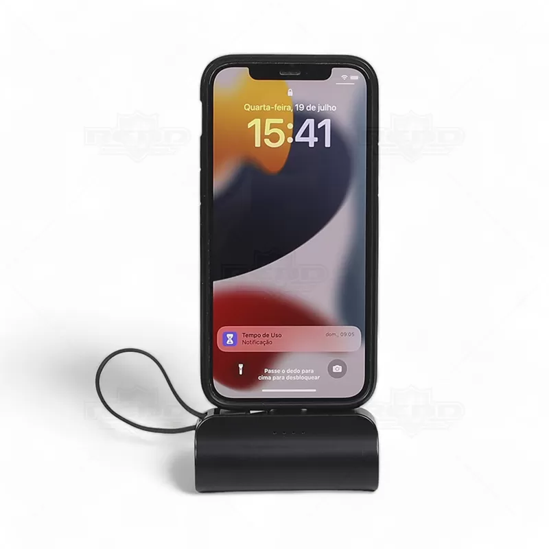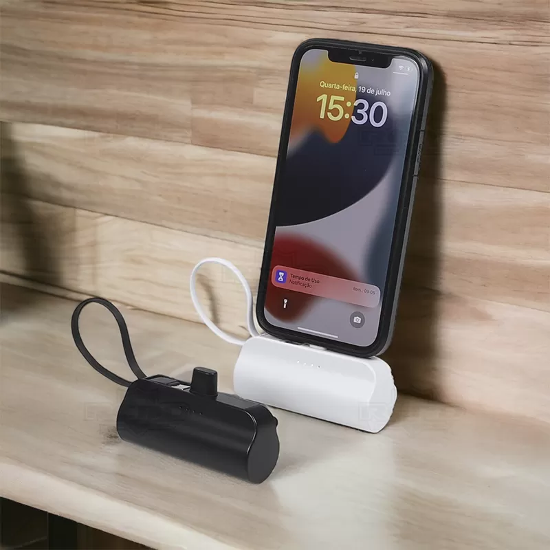 Carregador personalizado portátil e dadas as suas características técnicas pode ser usado em viagens (como bateria portátil). Bateria com indicador de carga LED, possibilita o carregamento de até 2 dispositivos em simultâneo, com entrada TYPE-C e saídas TYPE-C e lightning. Capacidade de 5.000 mAh. Fornecida em caixa presente com cabo incluso (USB/TYPE-C). Tendo a parte externa confeccionada em plástico resistente, podendo personalizar com o seu logo e trazer destaque a sua empresa. O carregador ideal para brindes corporativos e eventos promocionais. Imagem ilustrativa.