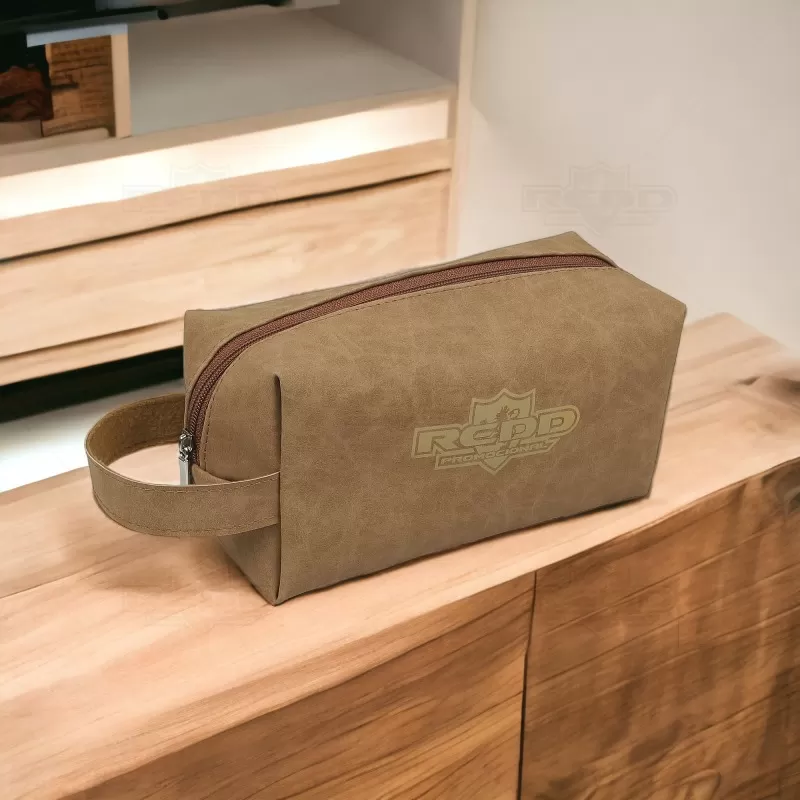 Necessaire personalizada produzida em tecido sintético e forrada em nylon, com amplo espaço no compartimento principal. Possui fecho em zíper e alça lateral do mesmo material para facilitar o transporte e uso do produto. Este acessório prático e elegante é ideal para armazenar e organizar itens de higiene pessoal, maquiagem ou outros objetos essenciais. O tecido sintético oferece uma alternativa sustentável, proporcionando uma aparência e sensação similares ao couro, mas sem utilizar materiais de origem animal. Resistente e durável, a necessaire personalizada com seu logo garante uma vida útil longa e é perfeita para promover sua marca em eventos corporativos e brindes personalizados.