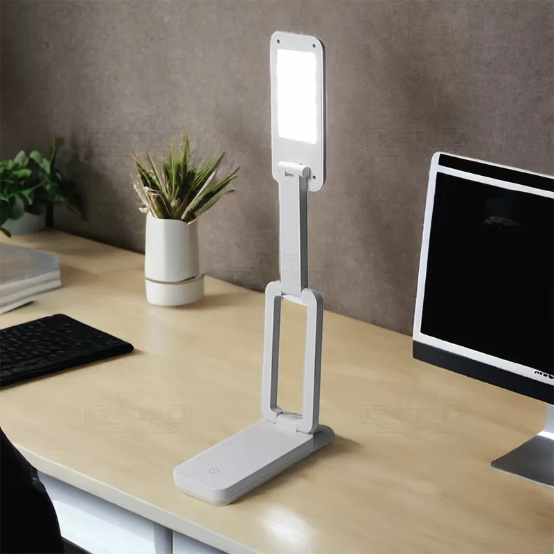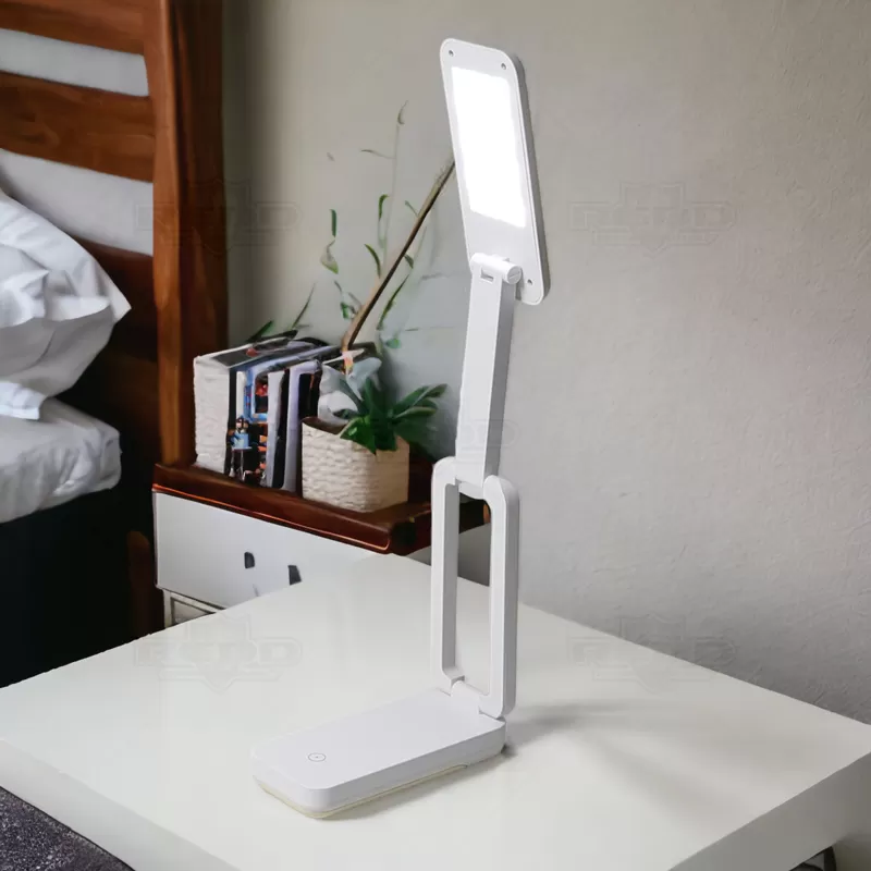 Luminária de mesa personalizada com haste retrátil, com 14 leds e funciona através de toque (sistema "touch") possuindo 3 estágios de intensidade de luz, sendo eles "luz fria" (branca), "luz quente" (amarela) e "luz mista" (branca e amarela). Entrada e botão de energia na parte traseira da base e sensor touch na parte superior frontal. Obs: Acompanha cabo USB e bateria de lítio. Uma luminária personalizada com o logo da sua empresa que é prática e eficiente, ao mesmo tempo elegante, trazendo charme ao ambiente sem perder a real funcionalidade de iluminar de forma discreta. Ideal para brindes personalizados, eventos corporativos e de decoração e designer. Imagem ilustrativa.