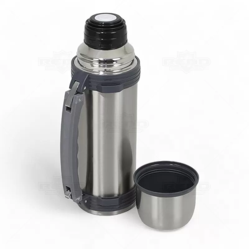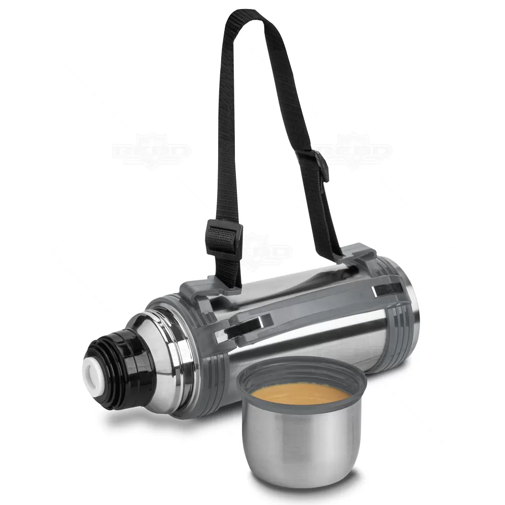 A garrafa térmica personalizada é fabricada em aço inox com parede dupla isolada a vácuo, projetada para manter suas bebidas quentes ou geladas por um período prolongado. Com capacidade generosa de até 1200ml, é ideal para quem valoriza praticidade e eficiência. A tampa protetora em inox, com interior em plástico, serve também como copo, proporcionando versatilidade. A tampa interna possui acionamento por "click", garantindo uso fácil e seguro, evitando vazamentos acidentais. Um anel de silicone assegura a vedação hermética, mantendo a temperatura da bebida por mais tempo. Equipada com alça de mão emborrachada e tira removível para uso como alça de ombro, oferece conforto no transporte em qualquer situação. Ideal para brindes corporativos, eventos gastronômicos e uso pessoal, combinando funcionalidade e design sofisticado.
