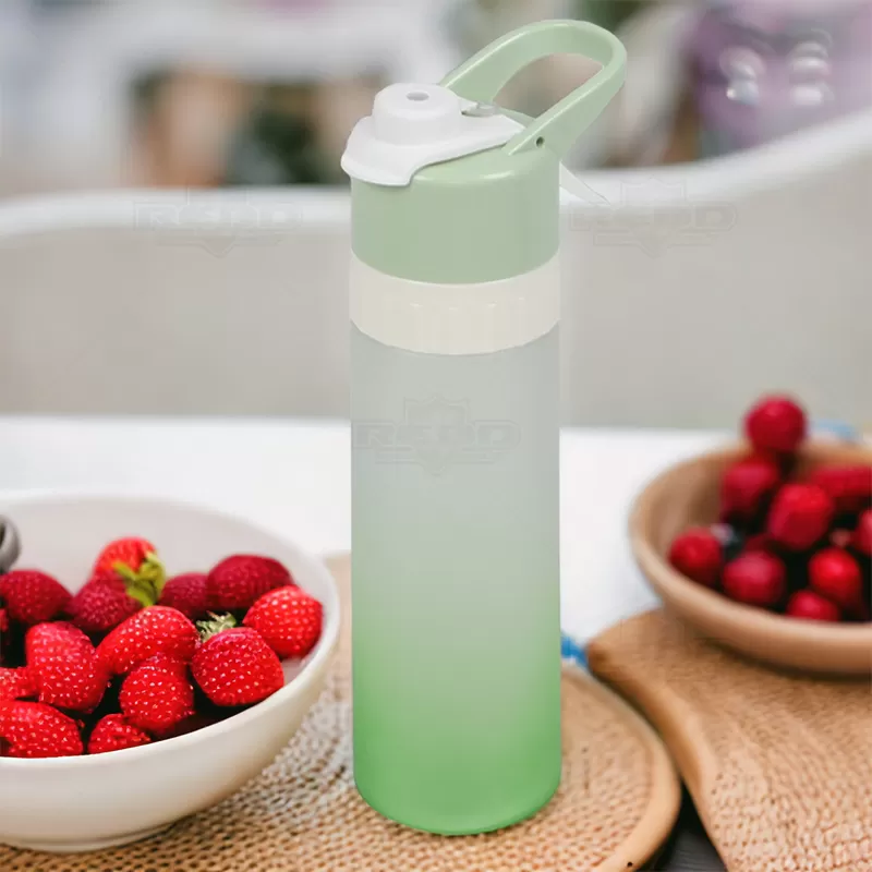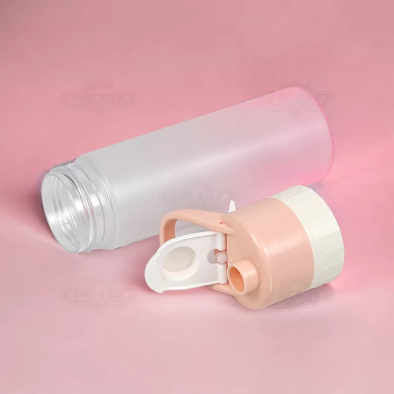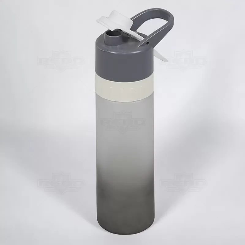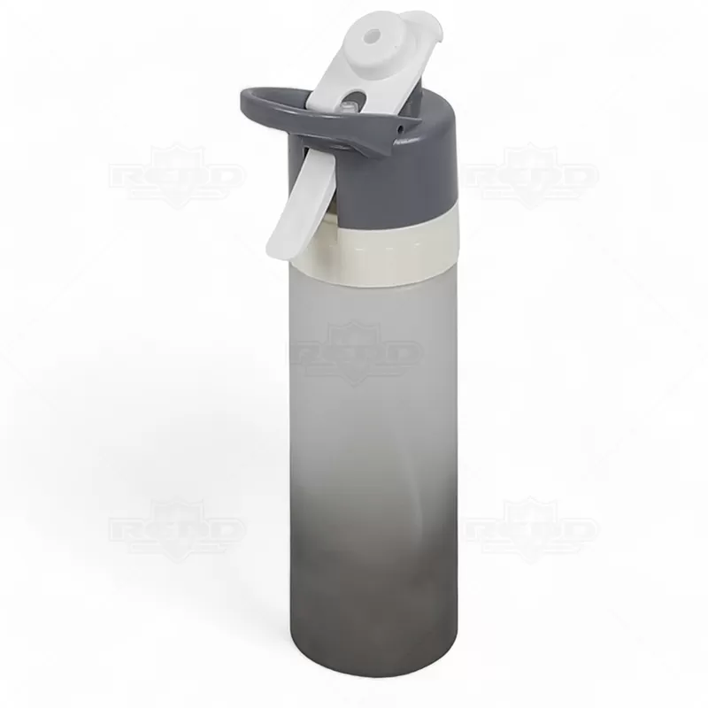 Squeeze personalizado produzido em plástico resistente com capacidade de 650ml, apresentando uma elegante coloração degradê bicolor. A tampa principal é rosqueável e possui um anel de vedação em silicone para evitar vazamentos, além de uma tampa de pressão para o bocal. Equipado com uma alça de transporte prática e um borrifador acionado por gatilho na parte posterior, este squeeze é ideal para manter-se hidratado durante atividades físicas e ainda refrescar-se. Perfeito para brindes promocionais e eventos corporativos, combinando charme, funcionalidade e estilo.