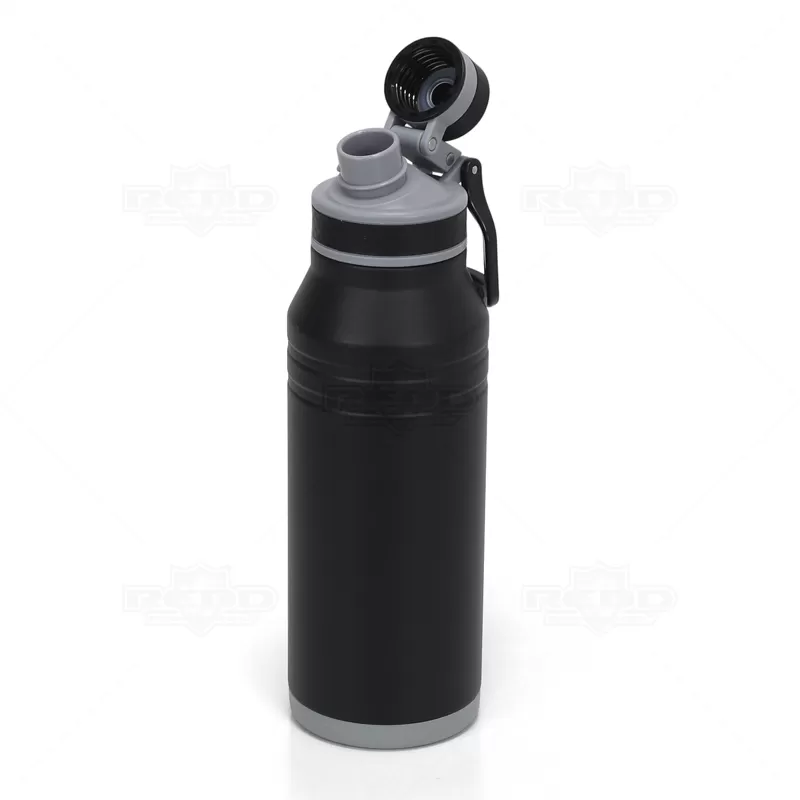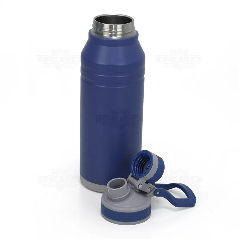 Squeeze Térmico Personalizado, é fabricado em aço inox de alta qualidade, com parede dupla isolada a vácuo para máxima eficiência térmica. Com capacidade generosa de 1200ml, ideal para hidratação constante no trabalho, esportes ou aventuras ao ar livre. A tampa principal possui bocal largo para adicionar gelo facilmente e é equipada com anel de vedação em silicone, garantindo transporte sem vazamentos. Inclui tampa secundária estilo cantil com bico atóxico e anel de vedação, proporcionando segurança adicional. A alça de transporte flexível acoplada facilita o transporte. Durável, funcional e com design elegante, é perfeito para qualquer ocasião tornando-o ideal para personalização com seu logo, excelente para brindes corporativos e promocionais.