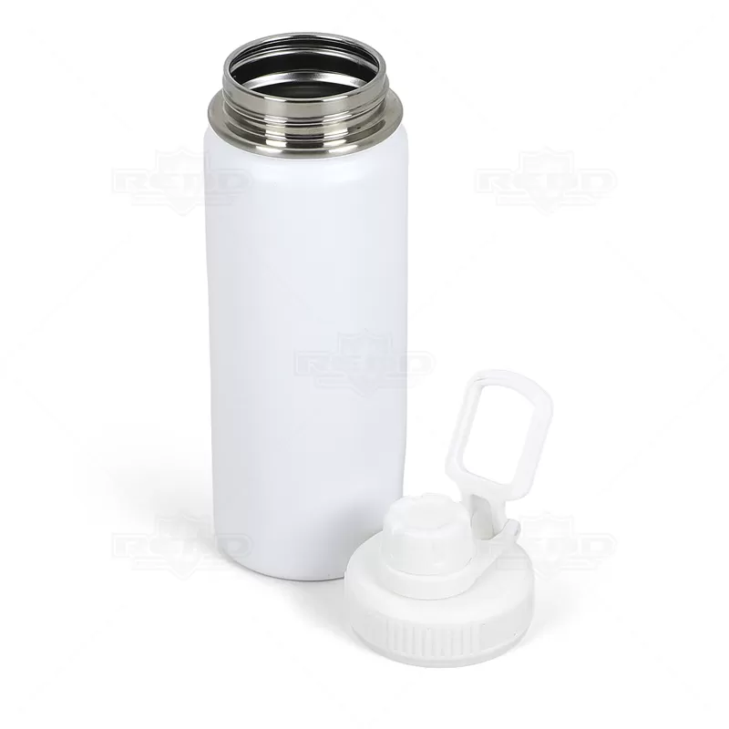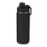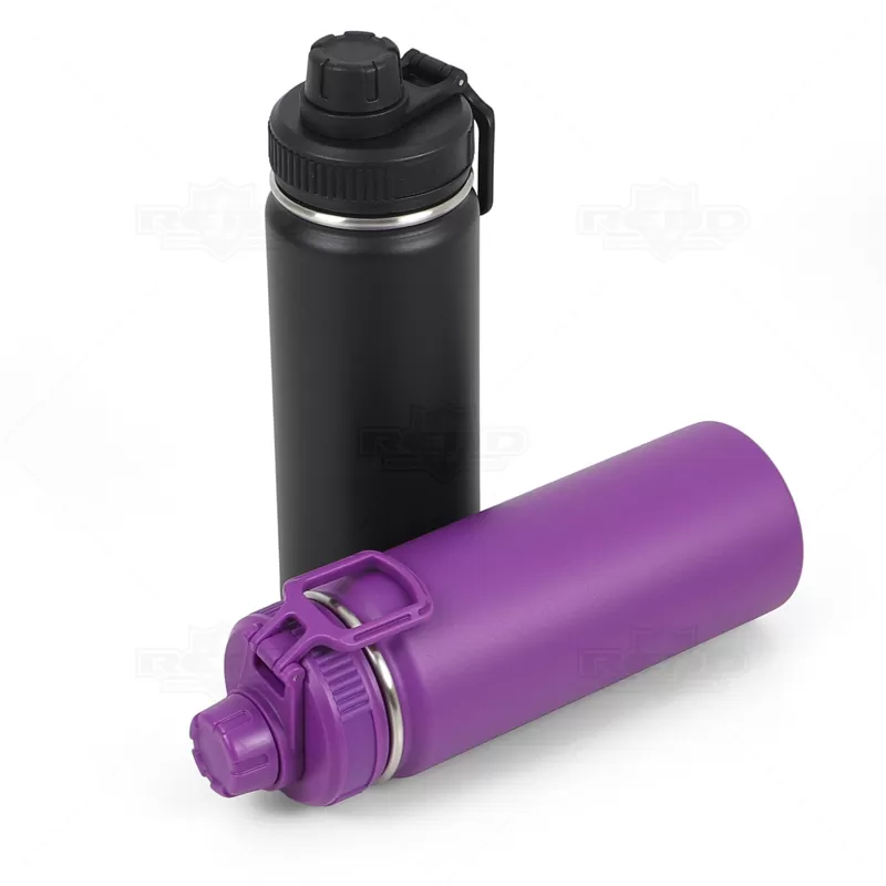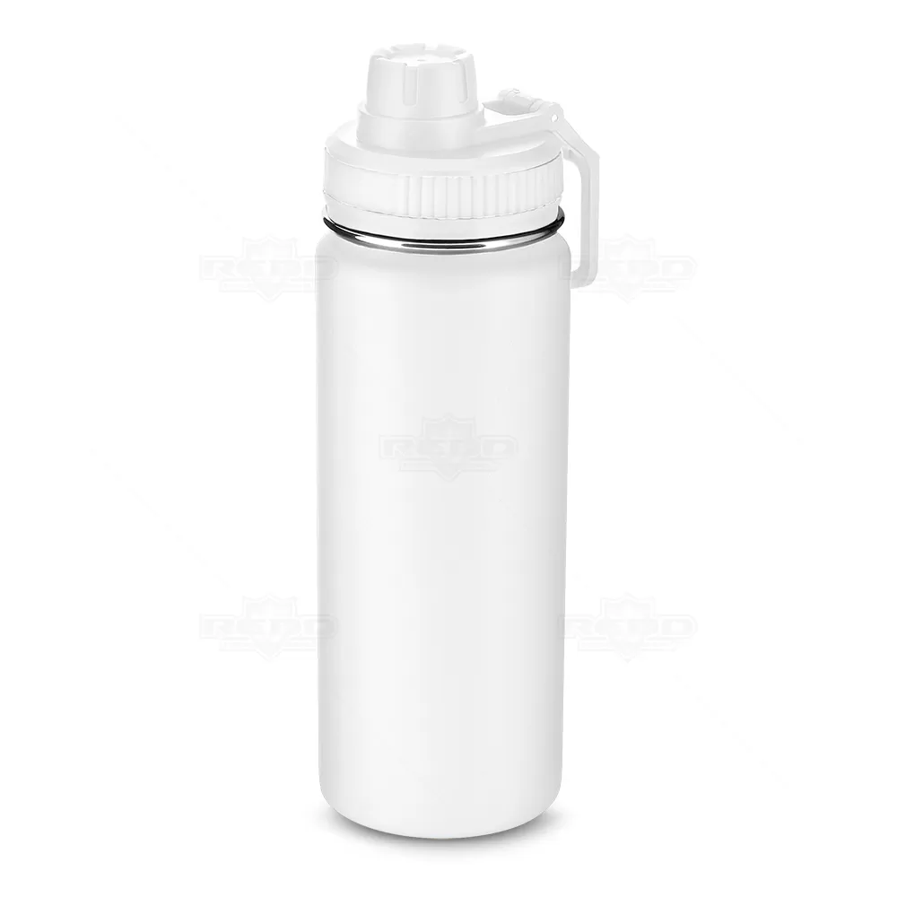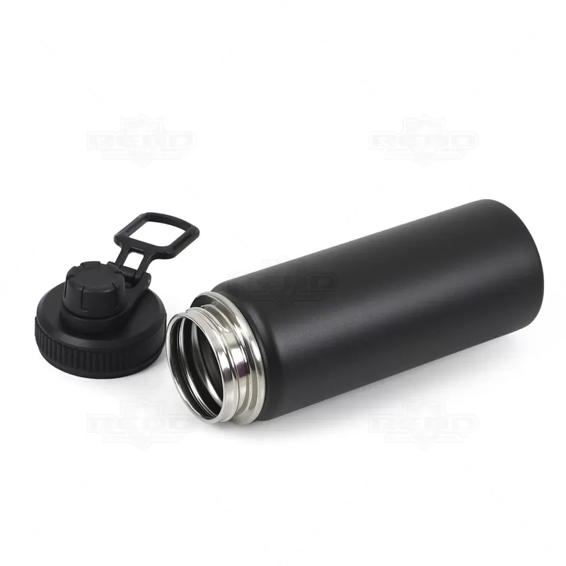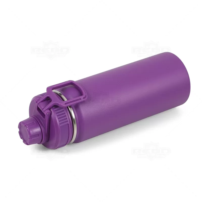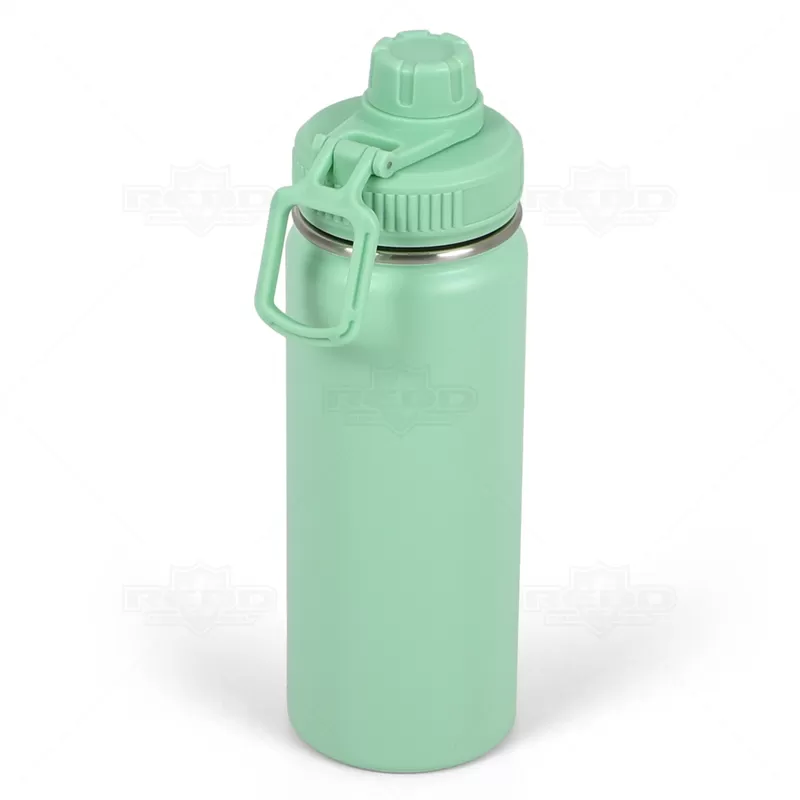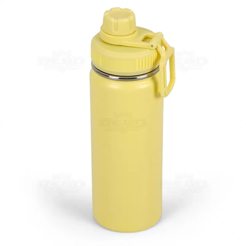Garrafa térmica personalizado, produzido em aço inox, com textura porosa trazendo melhor pegada e evitando que escorregue, capacidade de 580ml. Tampa principal com bocal largo, possibilitando que seja colocado gelo ou qualquer ingrediente para saborizar sua bebida e frisos para auxiliar a abertura, anel de vedação em silicone para evitar vazamento, e tampa secundária estilo cantil com bico atóxico, também com anel de vedação e com alça de transporte acoplada a tampa. De alta resistência e durabilidade, podendo ser usada para todos os fins. Ótima para academias, práticas esportivas, brindes promocionais e eventos corporativos.