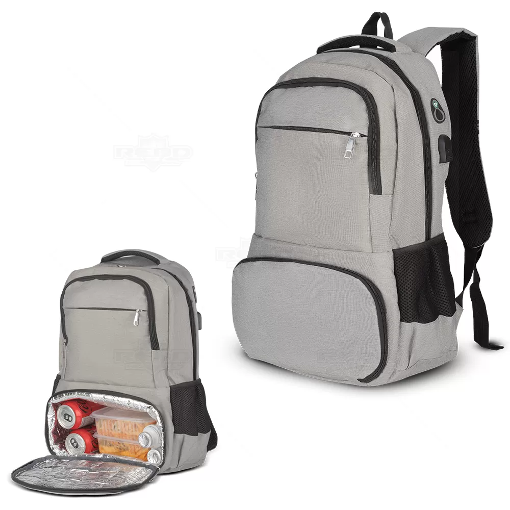 A mochila térmica personalizada é um acessório prático e sustentável, ideal para quem busca funcionalidade e estilo no dia a dia. Produzida em PET reciclável, além do compromisso com a sustentabilidade, não compromete a qualidade e a durabilidade. A mochila possui um compartimento com revestimento térmico de aproximadamente 6,7 litros, um compartimento frontal de fácil acesso para pequenos itens, bem como um compartimento dedicado para notebook, garantindo segurança e proteção para dispositivos eletrônicos, os bolsos laterais são ideais para garrafas ou outros itens de fácil alcance, enquanto a alça de mão acolchoada proporciona conforto ao carregar a mochila. As alças ajustáveis para as costas também são acolchoadas, oferecendo suporte e conforto durante o uso prolongado. Para maior conveniência durante viagens, a mochila térmica possui uma tira trolley que permite fixá-la facilmente a uma mala de viagem, e além disso, a mochila está equipada com uma saída para fone de ouvido e uma porta USB, permitindo que conecte um power bank (não incluso) e mantenha seus dispositivos carregados em qualquer lugar. Este item é uma escolha excelente para quem quer presentear seus parceiros e clientes com um brinde personalizado de altíssima qualidade. *Não é adequado colocar gelo pois por mais que a bolsa conserve a temperatura o gelo irá derreter e vazar pela costura, caso o objetivo principal seja a utilização de gelo, opte por nossas opções de coolers.