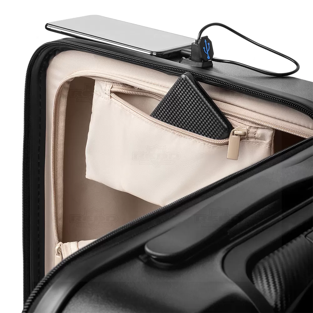 Mala de viagem personalizada modelo executivo em policarbonato, com 4 rodas 360 graus, interior forrado e pega extensível de aço, bolso interno duplo com fechamento em zíper, saída USB ótima para o carregamento de celulares (é necessário um powerbank não incluso), conta ainda com fita para fixação da roupa evitando que caia ao abrir a mala e cadeado tipo TSA (O Cadeado TSA Executive é ideal para sua mala de viagem, pois impede que você tenha seu cadeado danificado em inspeções em aeroportos dos Estados Unidos. Os cadeados TSA têm um sistema que permite que, além do seu segredo numérico, uma chave mestra possuída por agentes de segurança os abra.) Acompanha plaquinha plástica autocolante, própria para personalização com seu logo. Ideal para eventos corporativos, brindes promocionais e feiras de turismo.