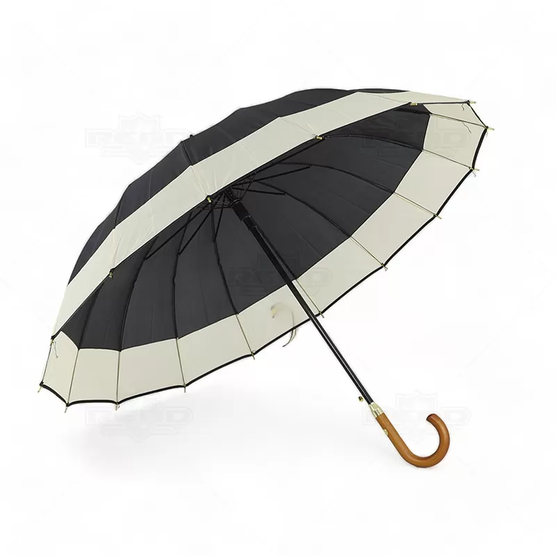 O guarda-chuva personalizado é um acessório essencial que une funcionalidade e estilo. Produzido em poliéster, um material resistente e durável, este guarda-chuva oferece proteção eficaz contra chuvas intensas. Seu cabo em madeira confere um toque de elegância e sofisticação, além de proporcionar uma pegada confortável e firme. Com um botão para abertura automática, este guarda-chuva oferece praticidade e conveniência, permitindo que você o abra rapidamente com apenas um toque, as 16 varetas metálicas reforçadas garantem estabilidade e resistência mesmo em condições de vento forte, proporcionando uma proteção confiável em todas as situações. O guarda-chuva possui gomos de uma cor com faixa na base na cor bege, criando um visual distinto e elegante. Essa combinação de cores é clássica e versátil, tornando o guarda-chuva adequado para uso em diferentes ambientes e ocasiões. Com uma abertura total de ø1160, este guarda-chuva oferece uma ampla cobertura, mantendo você e seus pertences protegidos da chuva. Esta característica o torna ideal não apenas para uso pessoal, mas também como uma opção de brinde promocional ou eventos corporativos, onde sua marca pode ser destacada de forma eficaz e duradoura.
