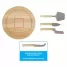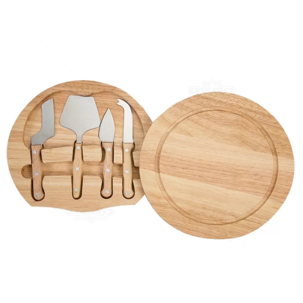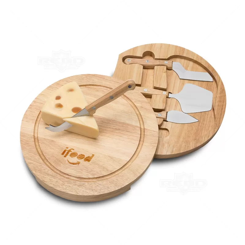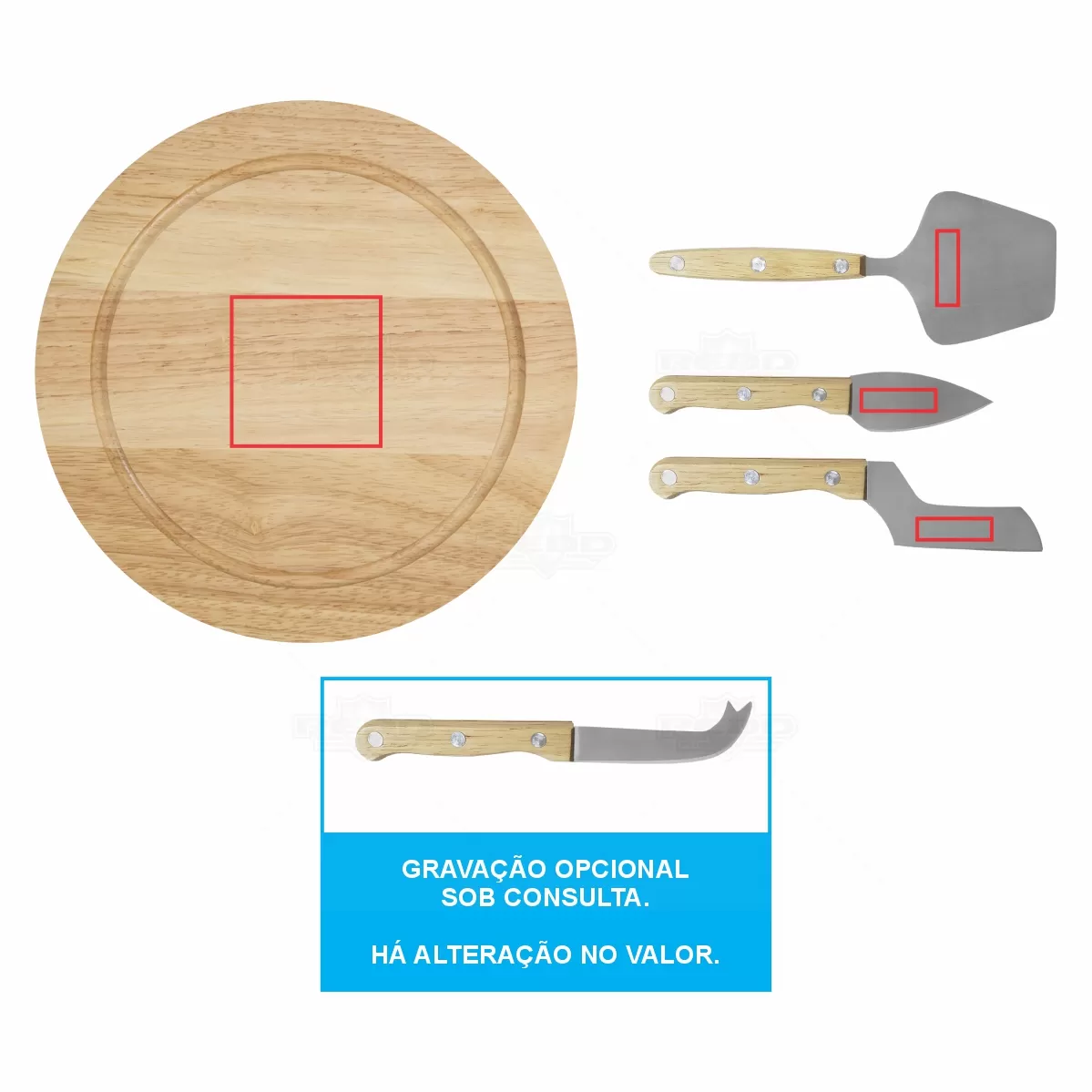 Kit queijo 5 peças produzido em madeira e aço inox. Para quem gosta de apreciar uma boa gastronomia, nada melhor que um kit de 5 peças ideal para completar sua degustação. Fácil manuseio, portátil e leve. Vem com 2 facas sendo 1 faca com ponta e outra faca reta, 1 garfo, 1 espátula e 1 estojo giratório de madeira personalizado.