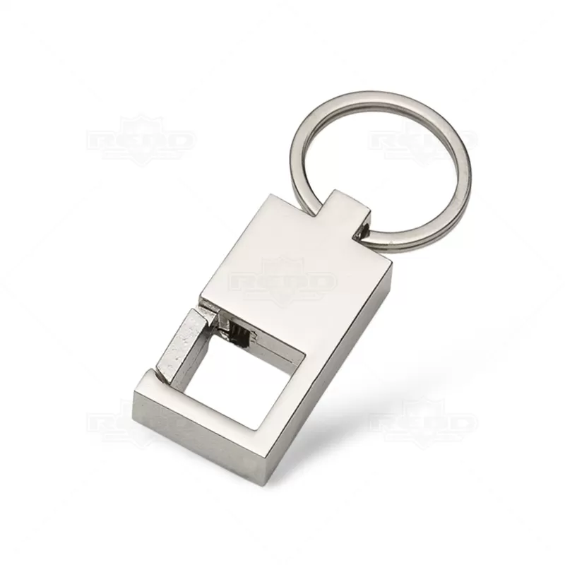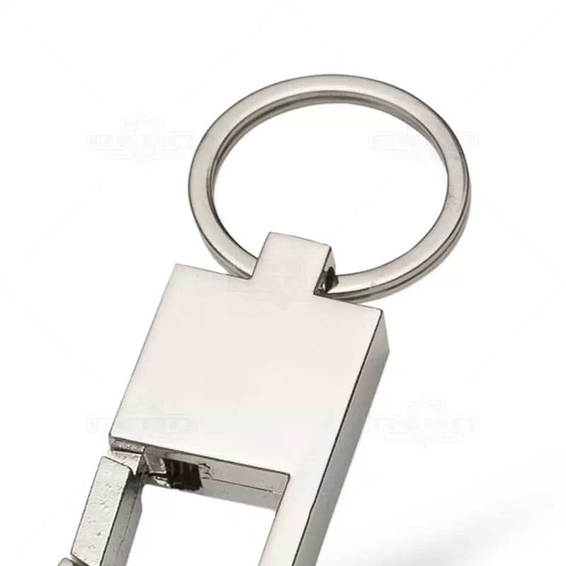 Chaveiro de metal personalizado com acabamento brilhante, possui argola de metal e engate rápido de fácil acesso. Ideal para divulgar sua empresa em eventos corporativos, brindes personalizados e campanhas promocionais.