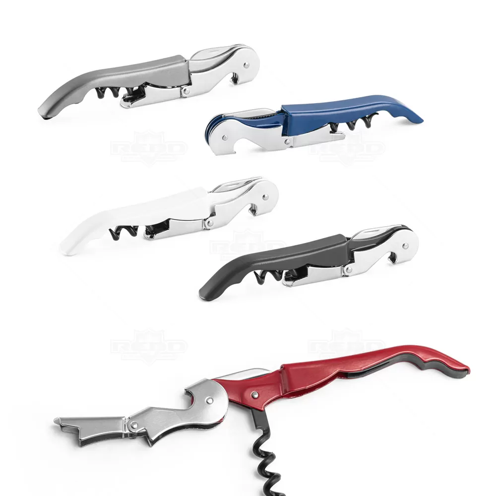 Saca-rolhas abridor com canivete personalizado produzido em metal, Possui 1 saca-rolha, 1 canivete e 1 abridor personalizado. Ideal para brindes promocionais e eventos corporativos.